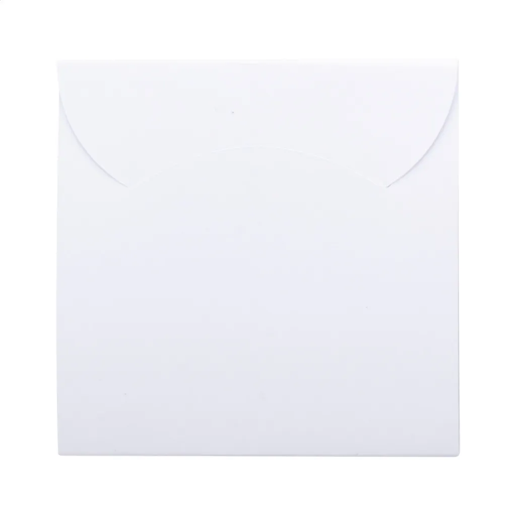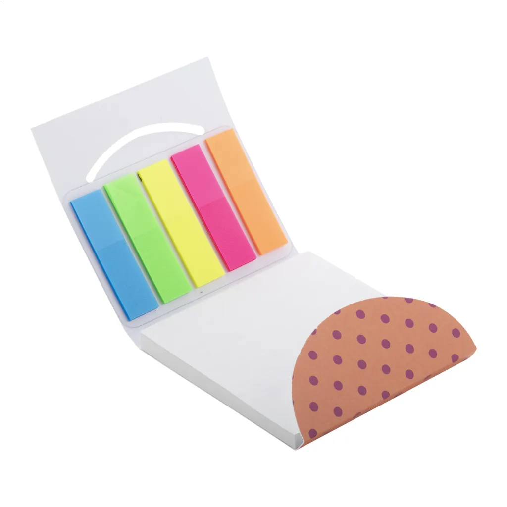 Personalizirane ljepljive bilješke presvučene papirom. Uključuju 50 listova ljepljivih bilješki od recikliranog papira (75×75 mm) i 100 plastičnih folija za označavanje stranica u 5 različitih boja (44×12 mm). U cijenu uključen full color tisak preko vanjskog pokrova. Minimalna narudžba: 100 kom.