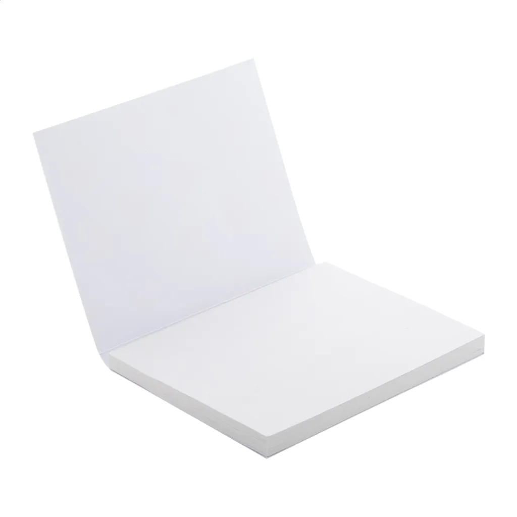 Personalizirane ljepljive bilješke presvučena papirom. Uključuju 50 listova ljepljivih bilješki od recikliranog papira (100×75 mm). U cijenu uključen full color tisak preko vanjskog pokrova. Minimalna narudžba: 100 kom.