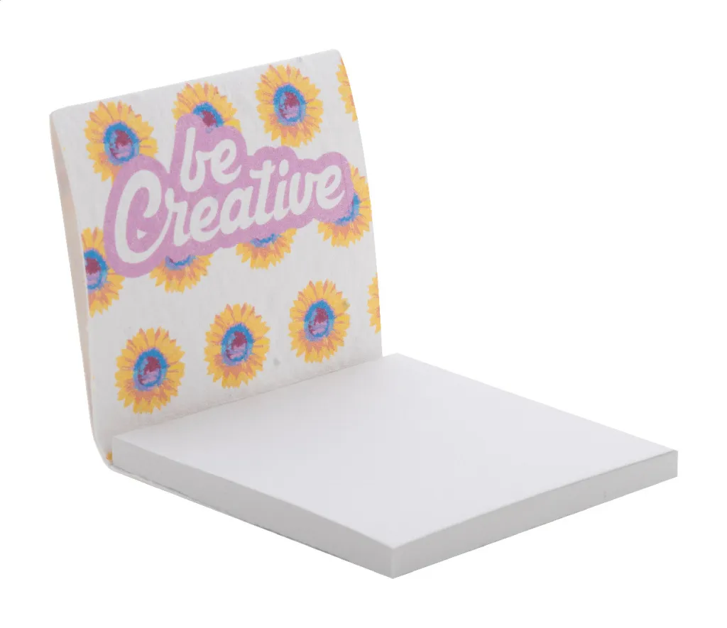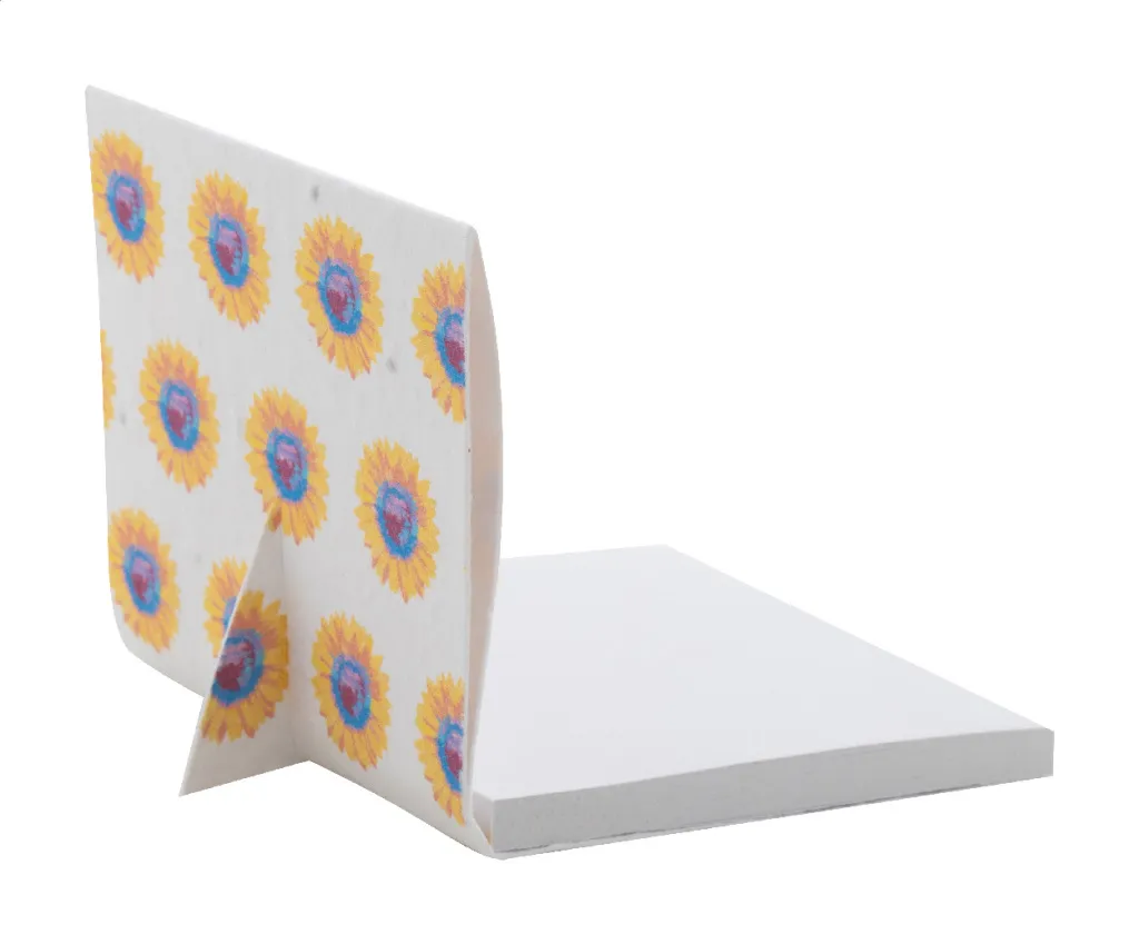 Prilagođeni držač za bilješke od papira sa sjemenkama s vertikalnim natpisom. Uključuje 50 listova samoljepljivih papirića od recikliranog papira (75×75 mm). Cijena uključuje full color tisak na držaču. Minimalna količina narudžbe: 100 komada. S raznolikim sjemenkama divljeg cvijeća.