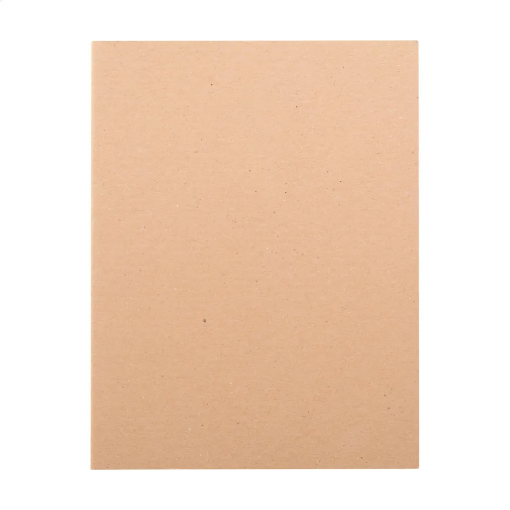 Personalizirane blok s ljepljivim bilješkama s koricama od recikliranog natron papira. Uključuje ljepljive bilješke od recikliranog papira u 2 veličine (50 listova 100x75 mm, 25 listova 50x75 mm) i 100 plastičnih folija za označavanje stranica u 5 različitih boja (44×12 mm). U cijenu uključen full color tisak preko vanjskog pokrova. Minimalna narudžba: 100 kom.