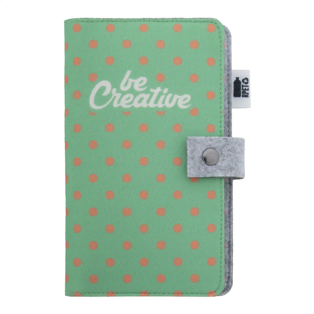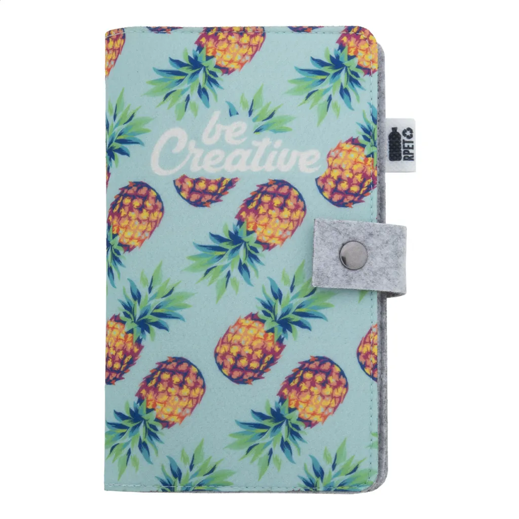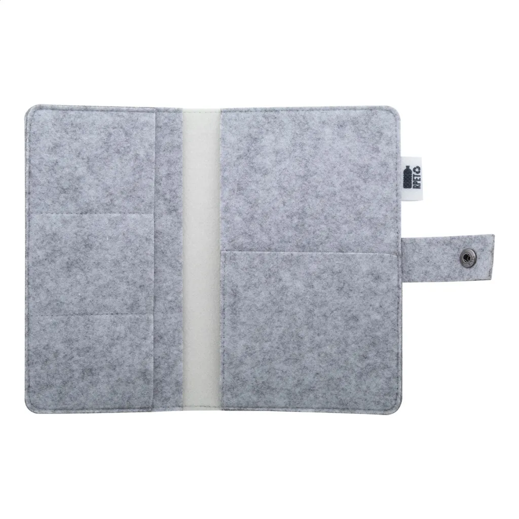 Personalizirani organizator za putovanje od filca od RPET-a, Full color tisak preko cijelih korica uključen u cijenu. Svišestrukim unutarnjim džepovima i kopčanjem na gumbe. S RPET oznakom. Cijena uključuje sublimacijski tisak. Minimalna količina narudžbe: 50 kom.