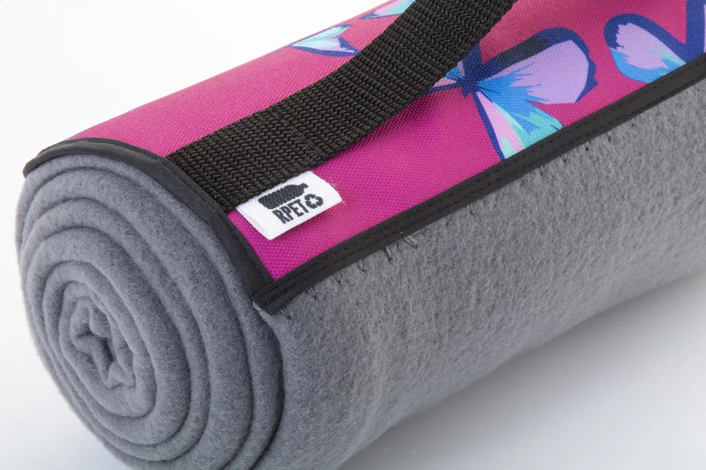 Po narudžbi izrađena RPET deka od polarnog flisa (200 g/m²) s čičak ručkom za nošenje od 600D RPET poliestera. Sa sublimacijskom tiskanom grafikom i prepoznatljivom RPET oznakom. Minimalna količina narudžbe: 25 kom.