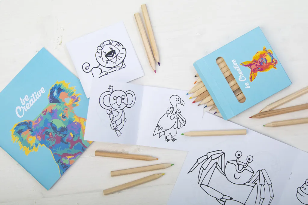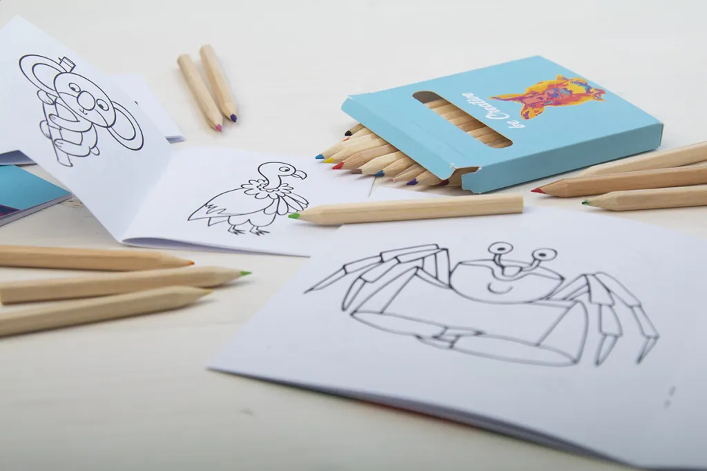 Personalizirani set za bojanje s full color tiskom na papirnatoj kutiji. Uključuje 12 bojica i tematsku bojanku. Minimalna narudžba: 100 kom.
