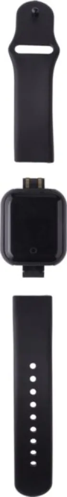 Pametni sat od PET-a i PVC-a s podesivim remenom i bežičnom tehnologijom. S malim gumbom ispod ekrana. Funkcije: mjerenje otkucaja srca, praćenje sna, mjerenje kisika, obavijest o porukama, podsjetnik za pijenje vode, podsjetnik za vježbanje. USB punjač skriven u remenu.