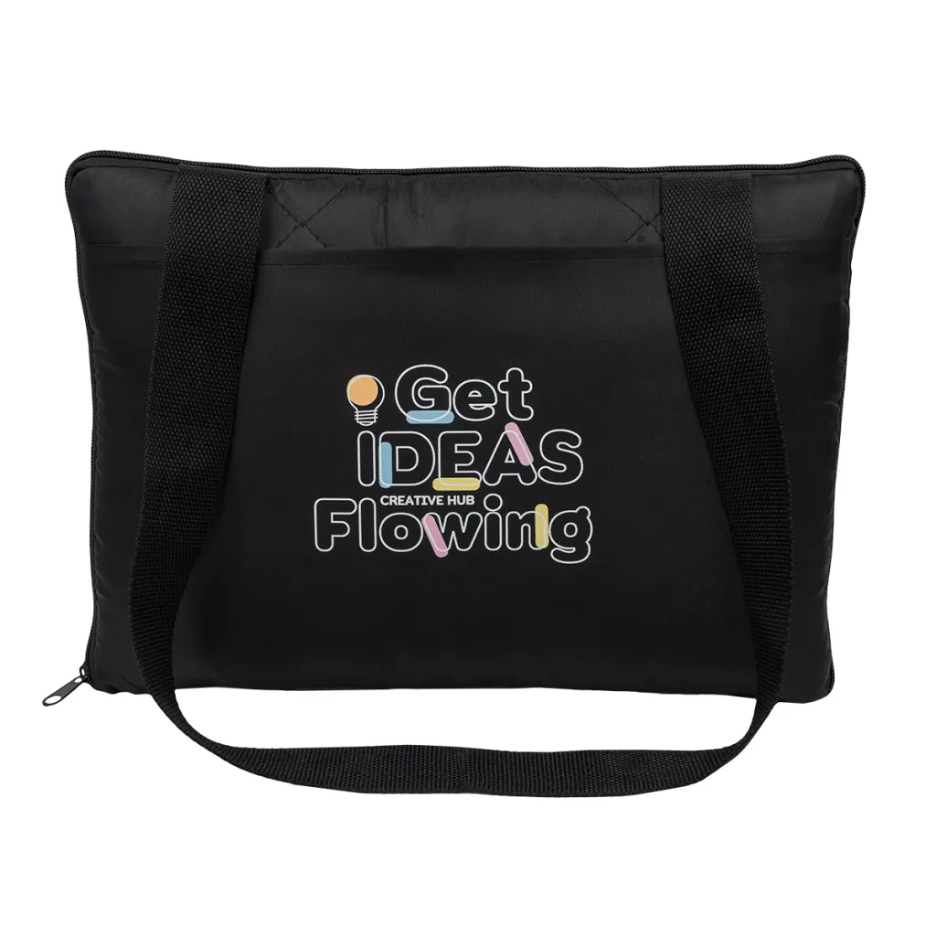 Prošivena putna deka/prostirka za piknik. Jedna strana je od flisa 180 g/m2, a druga od 210D poliestera. Deka ima patentni zatvarač koji vam omogućuje da je spakirate u udobnu torbu s remenom za rame i džepom. Možete ga koristiti i kao jastuk tijekom putovanja.