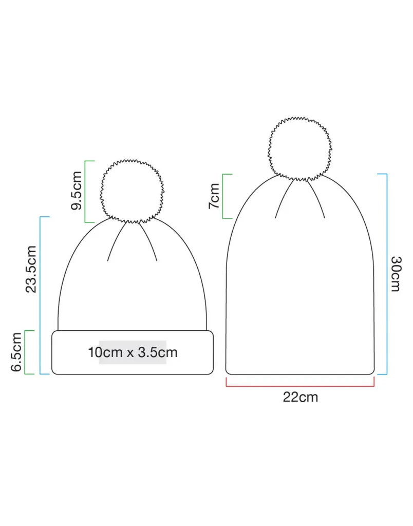 ·50% poliester (reciklirani), 50% poliakril ·Dvobojni pom pom ·Dvoslojno pletivo ·Dizajn s manžetama za optimalnu dekoraciju ·TearAway etiketa za lakše brendiranje.