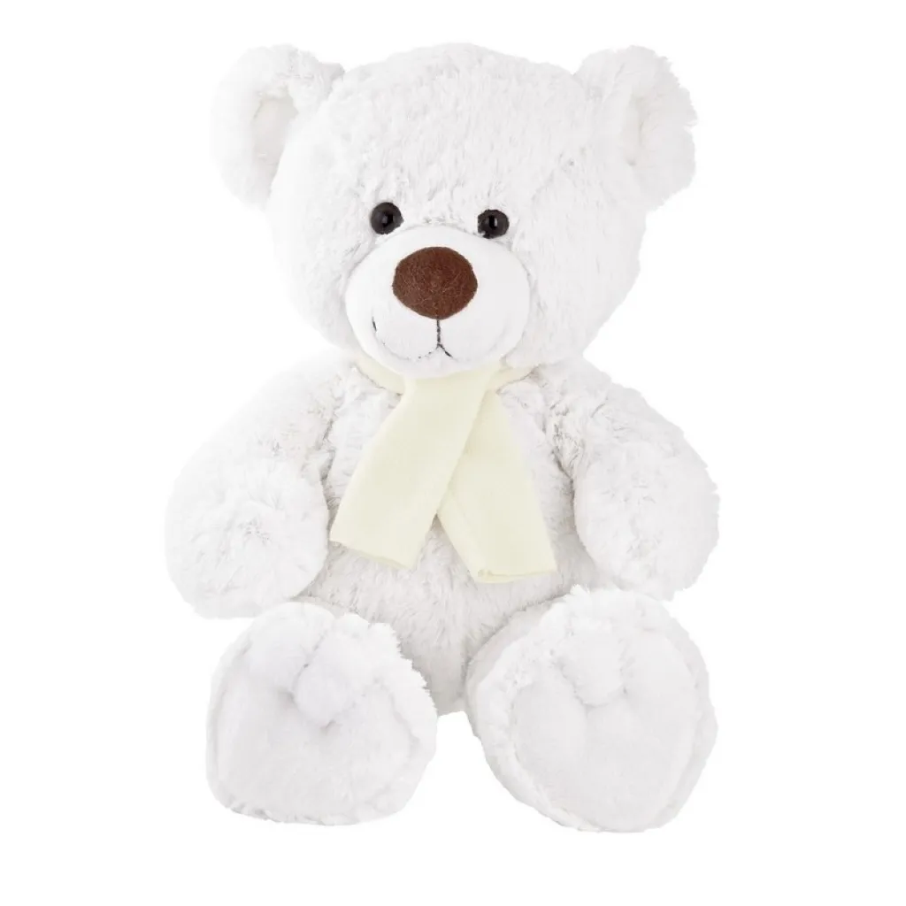 Bijeli plišani medvjedić sa šalom pogodnim za tisak, komplementaran s majicom HU111.