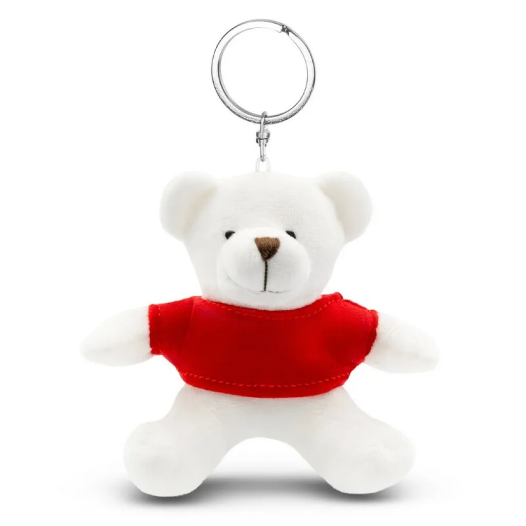 Medo s crvenom majicom pogodnom za tisak, privjesak za ključeve (majica pakirana zasebno).