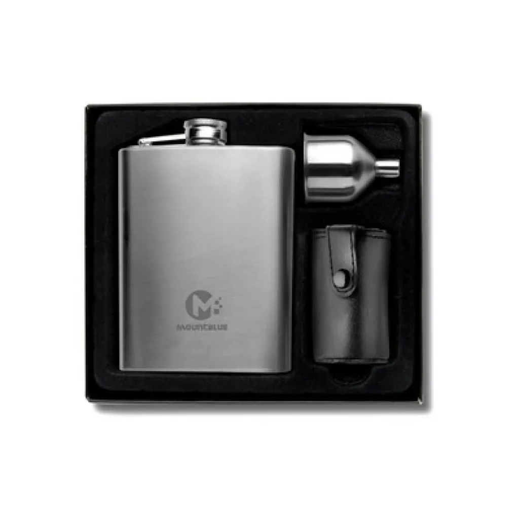 Set za piće, sastoji se od pljoske 220 ml, 4 čašice 30 ml i lijevka.