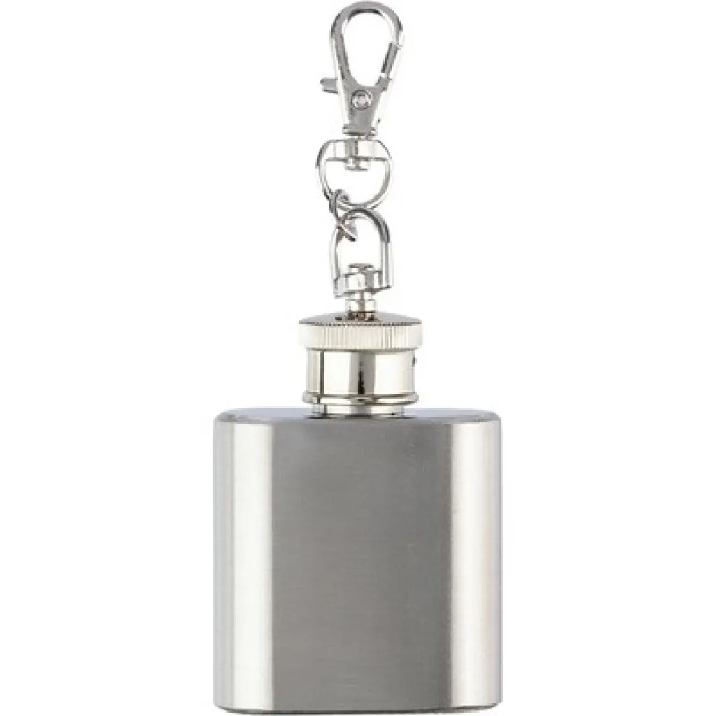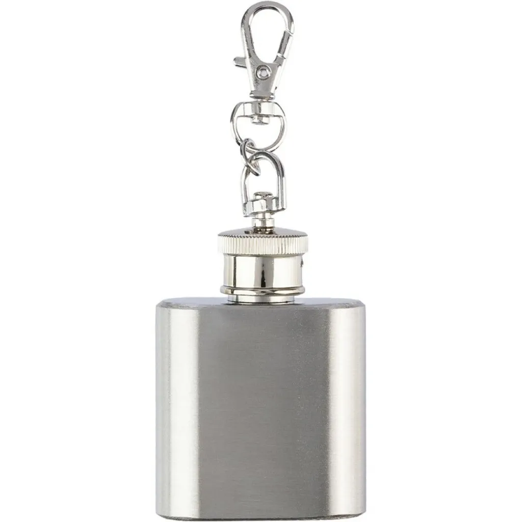Privjesak za ključeve "pljoska" zapremine 30 ml. Ima karabiner za jednostavno pričvršćivanje. Proizvod izrađen od nehrđajućeg čelika.
