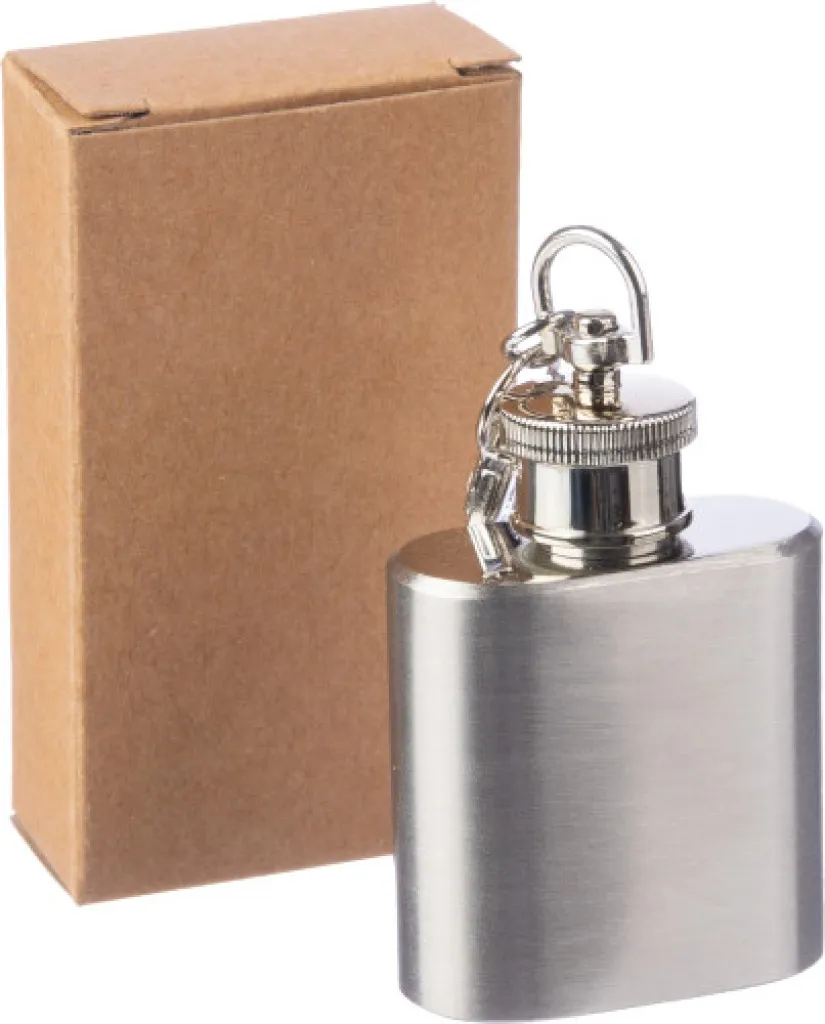 Pljoskica od nehrđajućeg čelika (s/s304) (30 ml) s karabinerom na privjesku za ključeve. Pojedinačno pakirano u smeđu kartonsku kutiju.