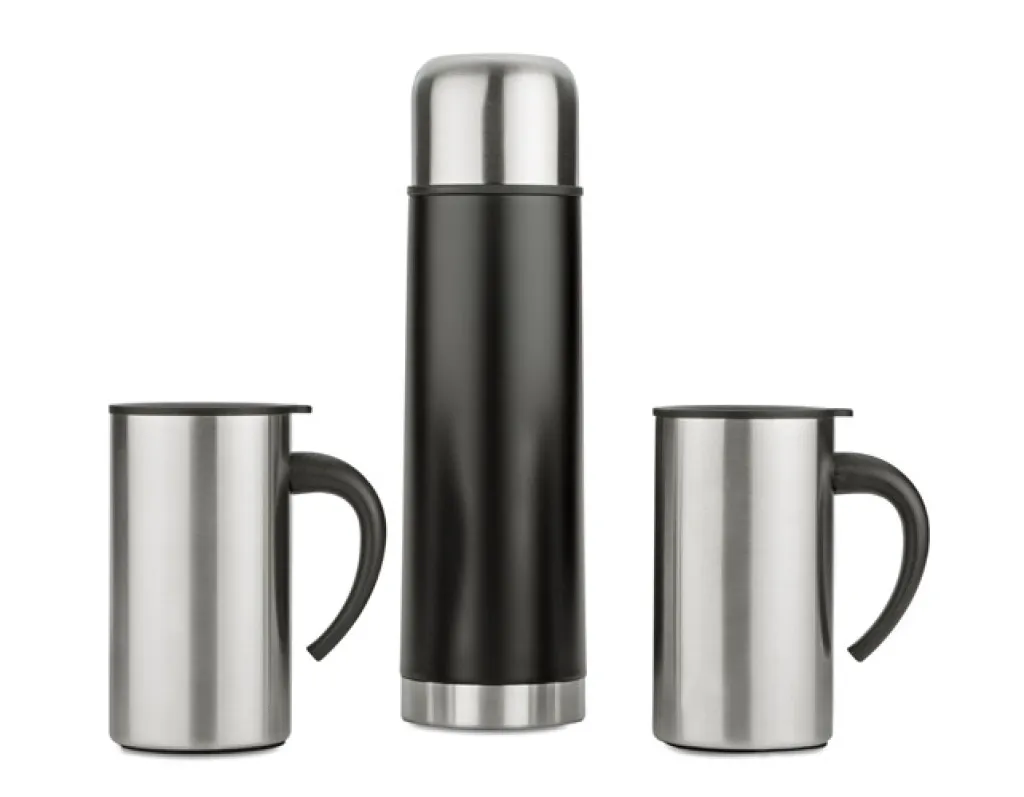 Termosica 500 ml od nehrđajućeg čelika i 2 šalice (s kapacitetom od 260 ml). Set je upakiran u crnu kartonsku kutiju.