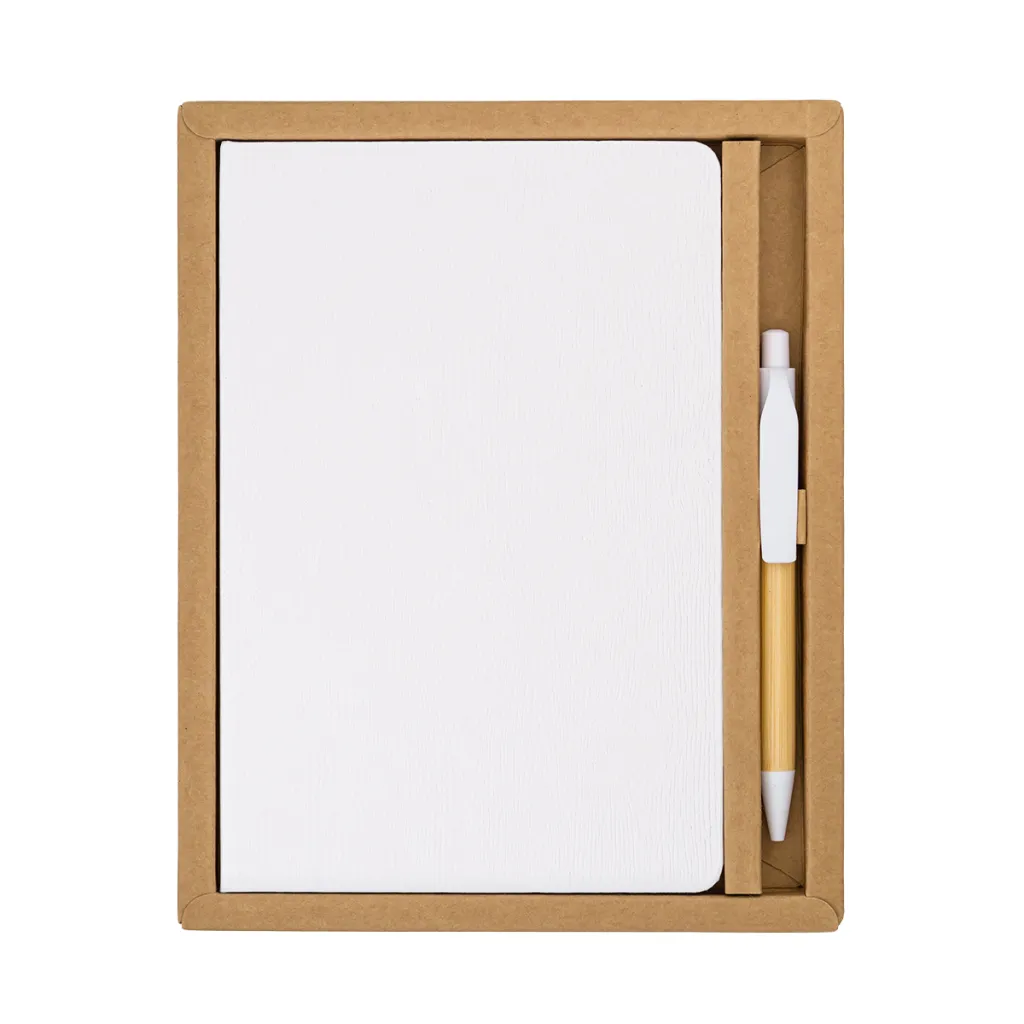Set se sastoji od A5 notesa s crtama i kemijske olovke. Notes s tvrdim koricama ima vrpcu za označavanje posljednje korištene stranice i elastičnu traku za držanje istog zatvorenim kada nije u upotrebi. 80 listova krem boje (70 g/m2 papir). Olovka od bambusa s plavim punjenjem. Set je pakiran u smeđu kutiju.
