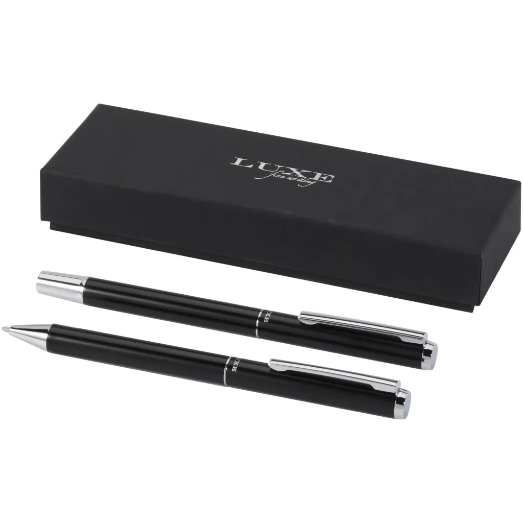 Lucetto poklon set od reciklirane aluminijske kemijske i roller olovke (crna tinta) - Luxe