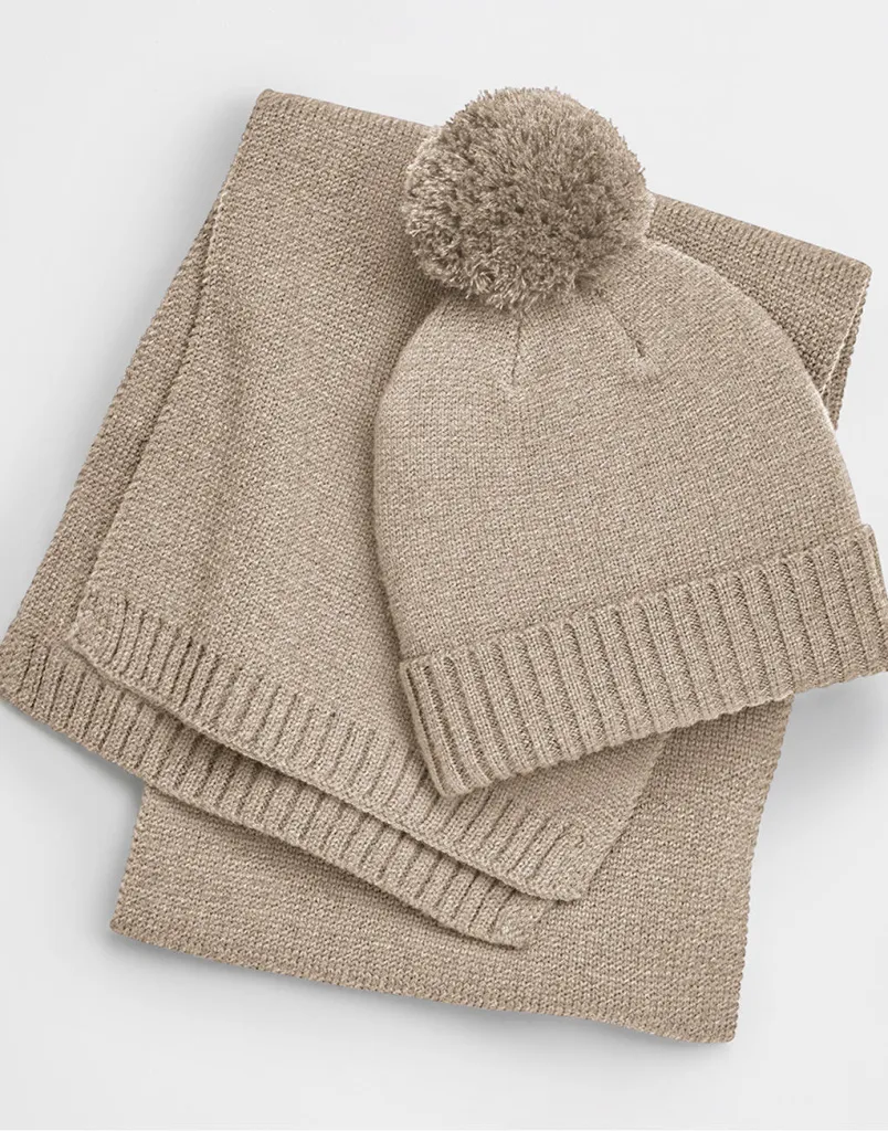·50% viskoza, 30% poliester, 20% najlon ·Luksuzna pređa mekana na dodir ·Dvodijelni set (rebrasta kapa s manžetama i pleteni šal) ·Jednoslojno pletivo ·Savršeno za sezonsko darivanje ·Kartonska ploča uključena za personalizirano darivanje ·TearAway etiketa za lakše brendiranje.