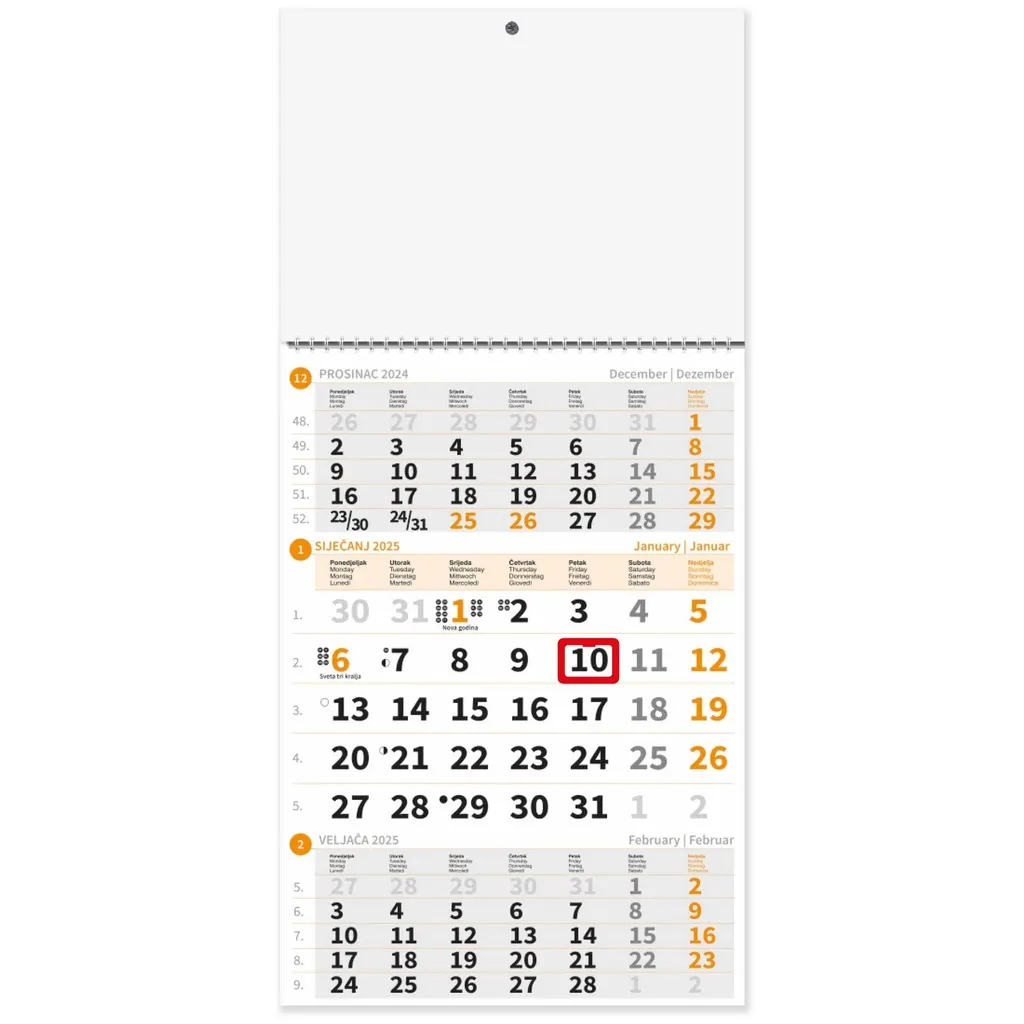 "Poslovni NARANČASTI" trodijelni kalendar, 12 list., dim:29,5x42cm, PVC vrećica, pokazivač, P/60