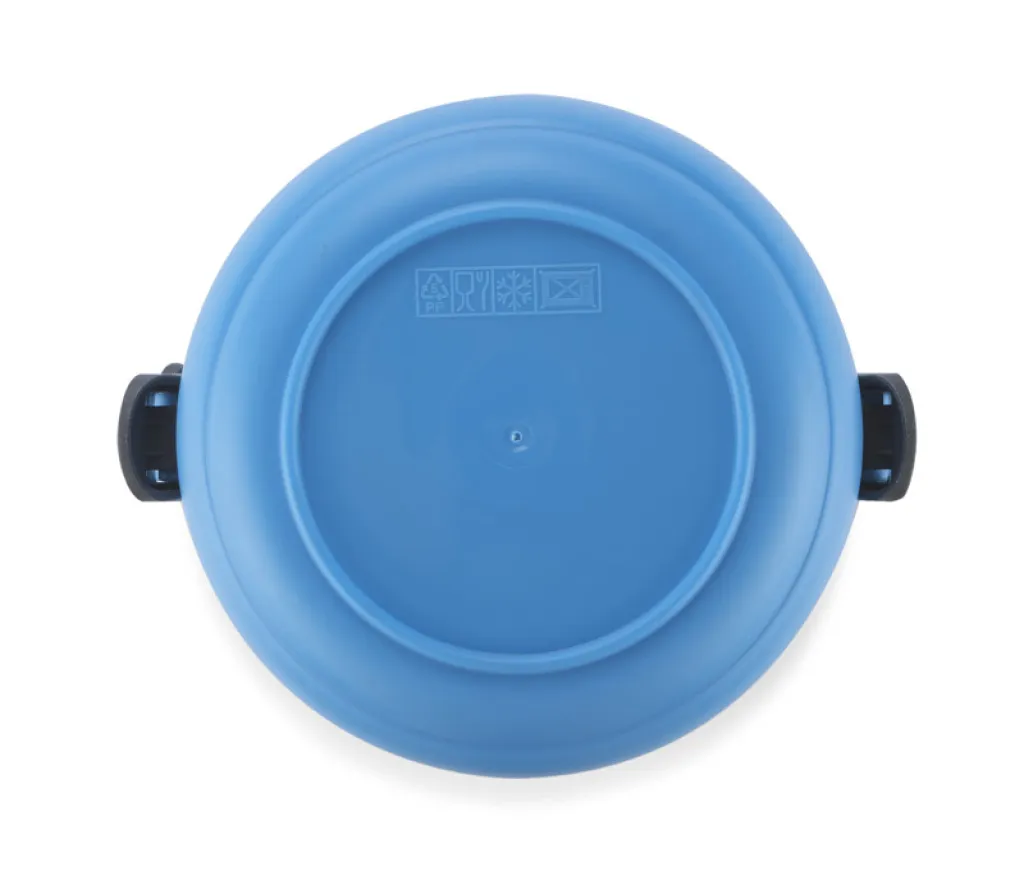 Posuda s unutrašnjošću izrađena je od nehrđajućeg čelika koja je podijeljena u dva dijela koja se mogu slagati jedna na drugu, što osigurava zgodan i udoban prijenos obroka u dva dijela. Gornja posuda je opremljena s poklopcem sa zatvaračem. Ručke od plastike su sklopive. Ukupni kapacitet: 1.400ml.