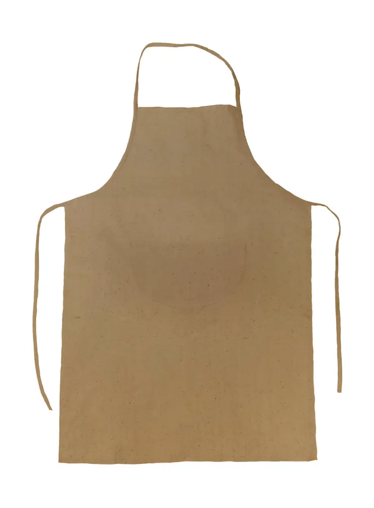 ·130 g/m² (Natural: 140 g/m²) ·100% pamuk ·Pregača s našivenim prednjim džepom ·Samo za jednokratno korištenje (nije namijenjena pranju) ·Dimenzije: 65 x 99 cm.