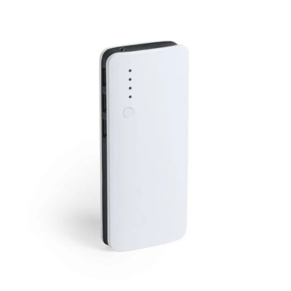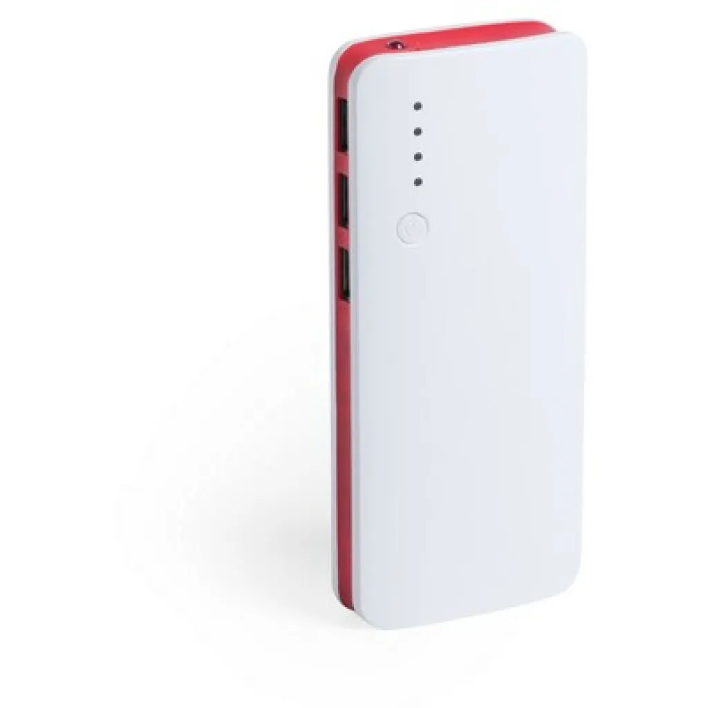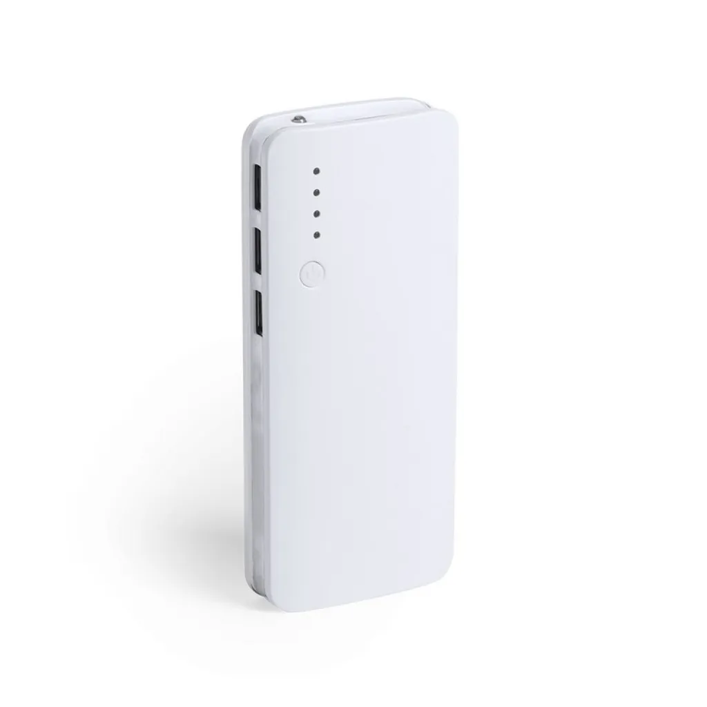 Prijenosna baterija (powerbank) od 10 000 mAh, 3 USB izlaza, 1 LED svjetlo, mikro USB ulaz, kabel nije uključen.