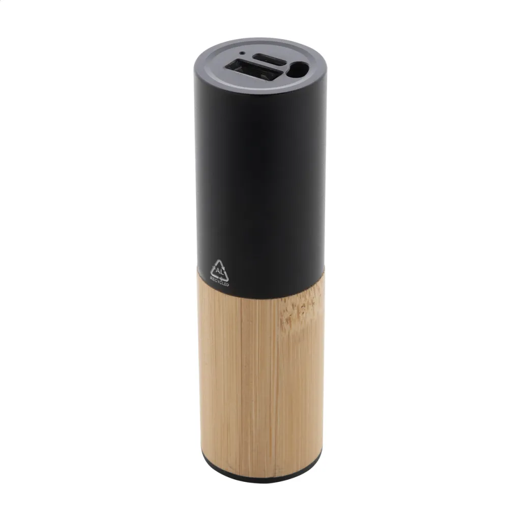 Powerbank od recikliranog aluminija i bambusa s baterijom od 2.600 mAh. S 1 USB i 1 USB-C priključcima za punjač. USB-C ulazni priključak. Uključuje USB kabel za punjenje.
