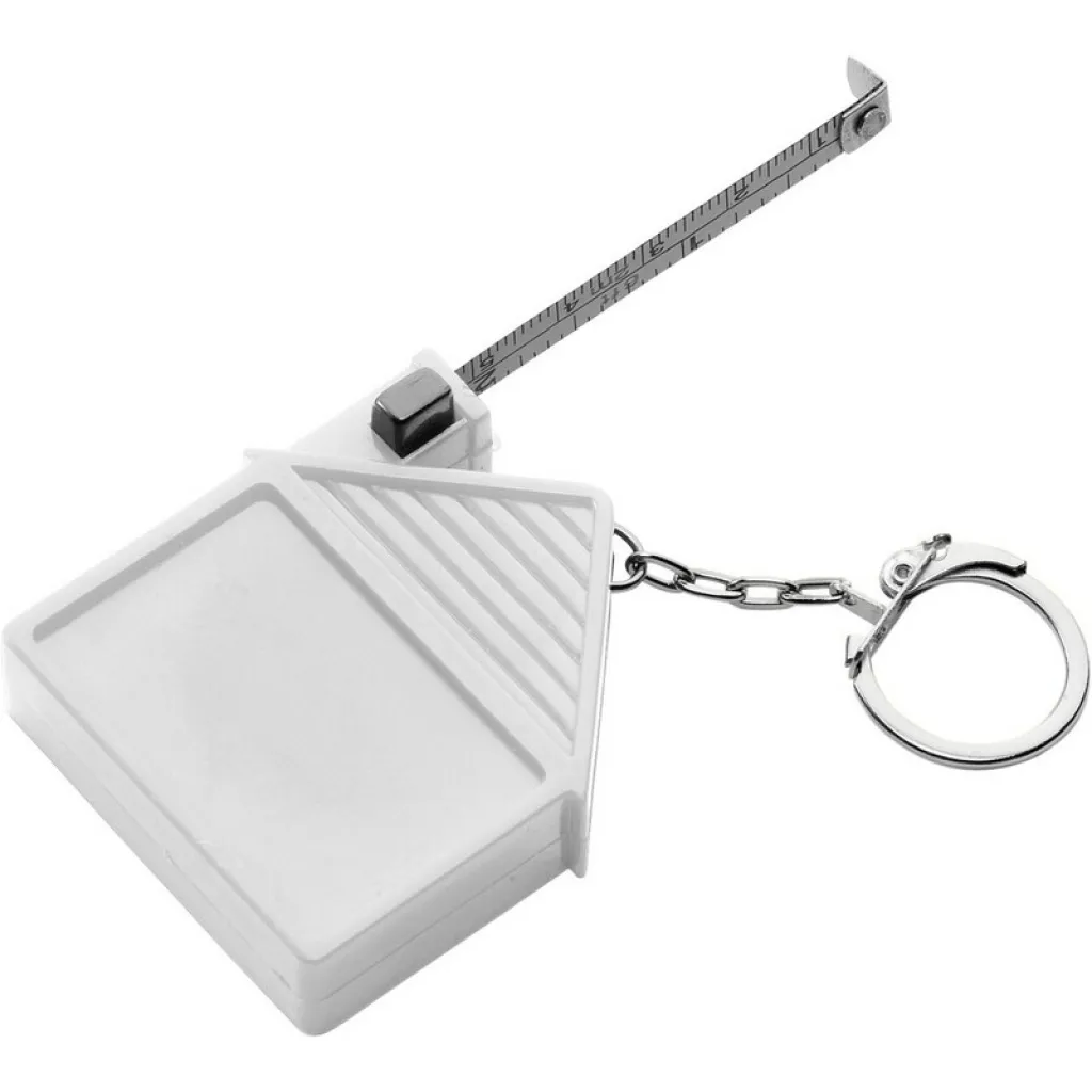 Privjesak za ključeve u obliku kuće s mjernom trakom od 2 m.