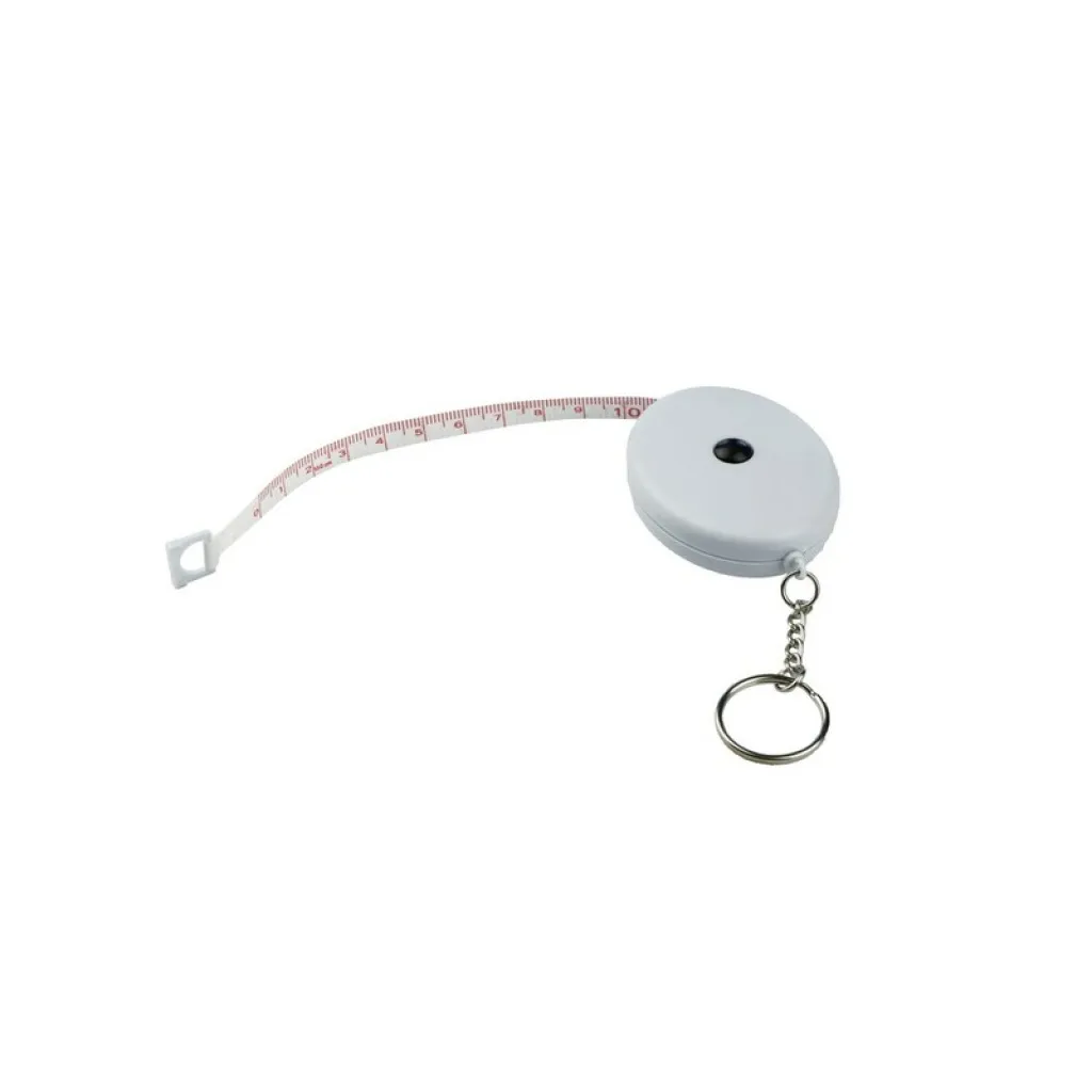 Privjesak za ključeve s mjernom trakom od 1,5 m s crnim gumbom za zaustavljanje.