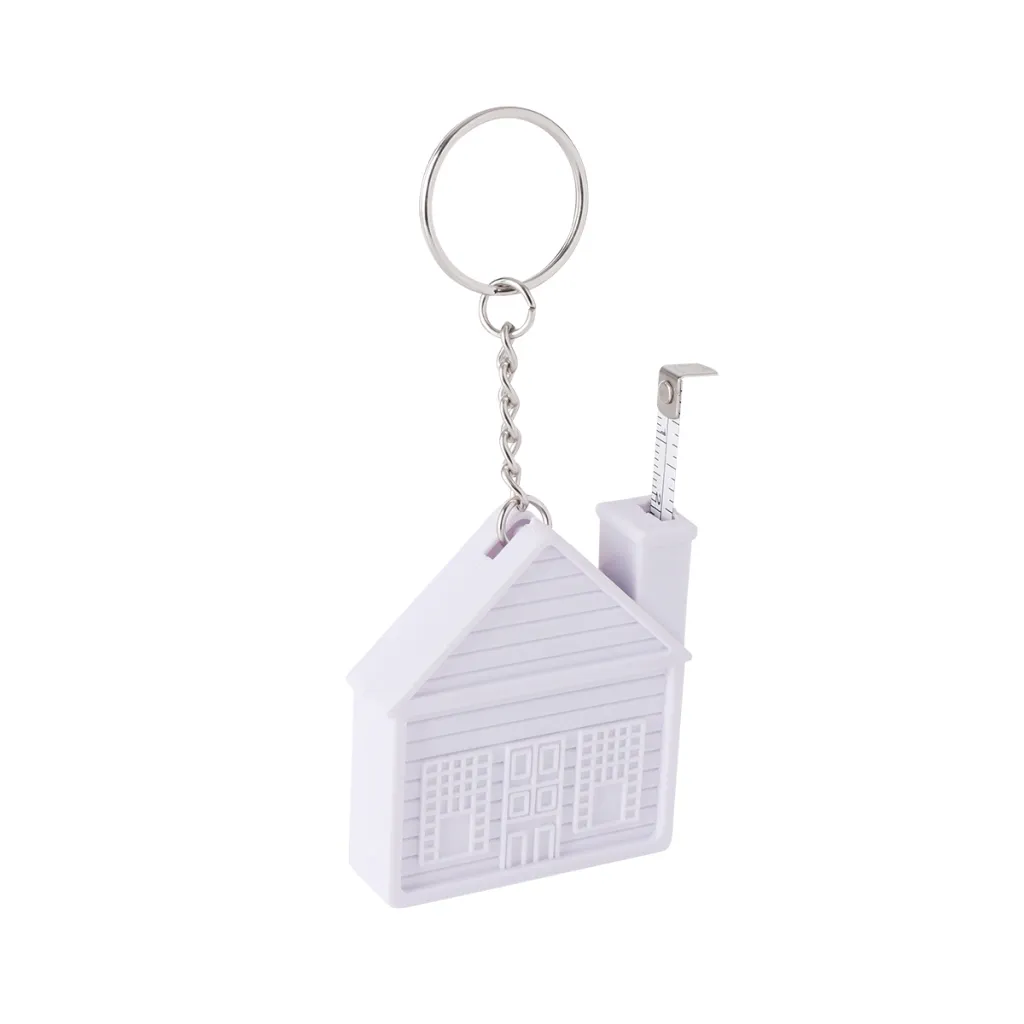 Privjesak za ključeve u obliku kućice s metrom duljinje 2 m u obliku kuće.