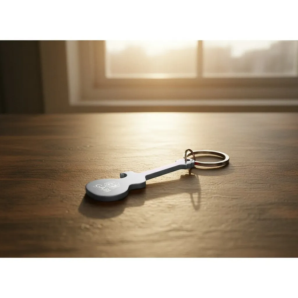 Privjesak za ključeve s otvaračem za boce, u obliku električne gitare.