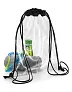 ·100% termoplastični poliuretan (TPU) ·Prozirni, vodoodbojni materijal ·Obrubi od poliestera i uzica za zatezanje u kontrastnoj boji ·Ojačani kanal za uzicu za zatezanje ·TearAway etiketa za lakše brendiranje ·Volumen: 11 litara ·Dimenzije: 33 x 45 cm ·Maksimalna površina za tisak: 28 x 35 cm.