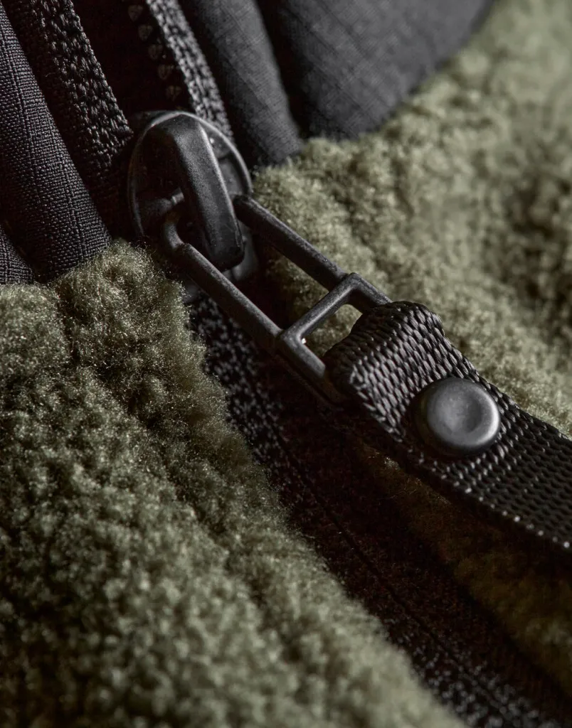 ·100% poliester (flis) ·Umetci: 92% poliester (Ripstop), 8% elastan ·Uspravni ovratnik ·Patentni zatvarač cijelom dužinom sa zaštitom protiv vjetra ·Džep na prsima s patentnim zatvaračem ·Elastični bočni paneli ·Prednji džepovi s patentnim zatvaračem ·Elastični obrubi na otvorima rukava i donjem rubu ·Strukirano.