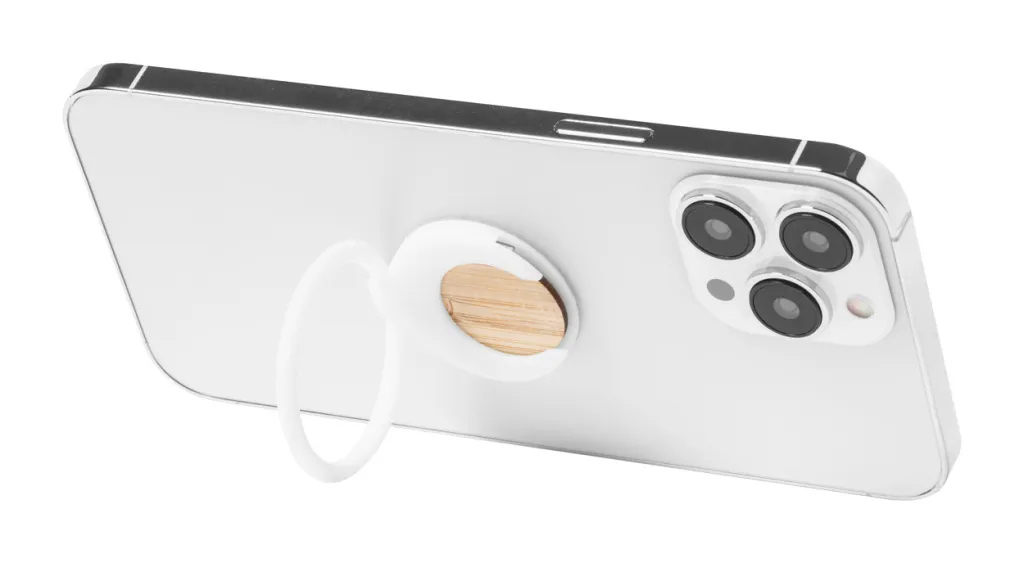 Okrugli držač za mobitel od ABS plastike sa samoljepljivom bazom i žetonom od bambusa za kolica za kupovinu.