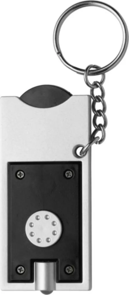PS držač ključeva s bijelim LED svjetlom i plastičnom kovanicom za kolica za kupovinu (veličina €0,50, nije pogodna za UK). Baterije su uključene.