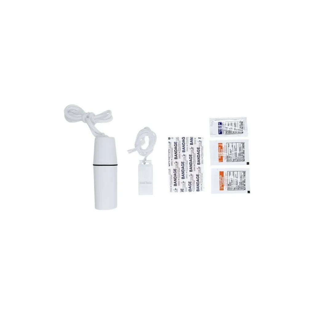 Putni set 6 komada, sadrži hidroalkoholni gel, sunčanu kremu SPF30, zavoje, zviždaljku, podesivu bijelu vezicu, kutiju. Proizvod izrađen od ABS plastike.