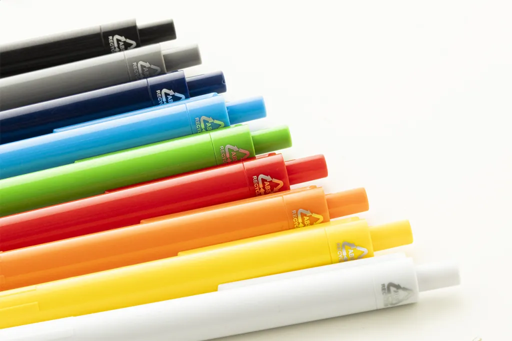 Kemijska olovka od reciklirane ABS plastike s plavim punjenjem.