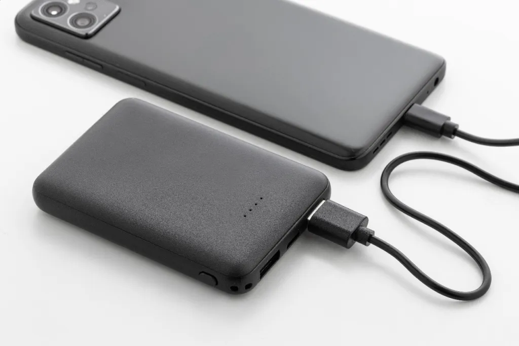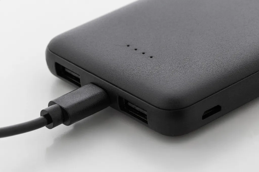 Prijenosna baterija (power bank) kapaciteta 5000 mAh. Materijal: reciklirani ABS. Sadrži 2 USB i 1 USB-C priključak za punjenje. Micro USB i USB-C ulazni priključci. Uključuje USB kabel za punjenje.