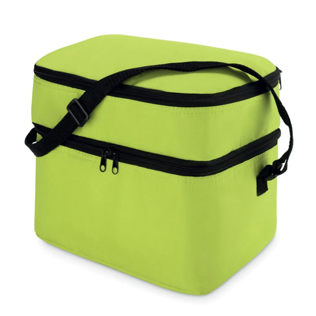 Rashladna termo torba od 600D poliestera s 2 odjeljka i izolacijom od aluminijske folije. Podesiva naramenica.