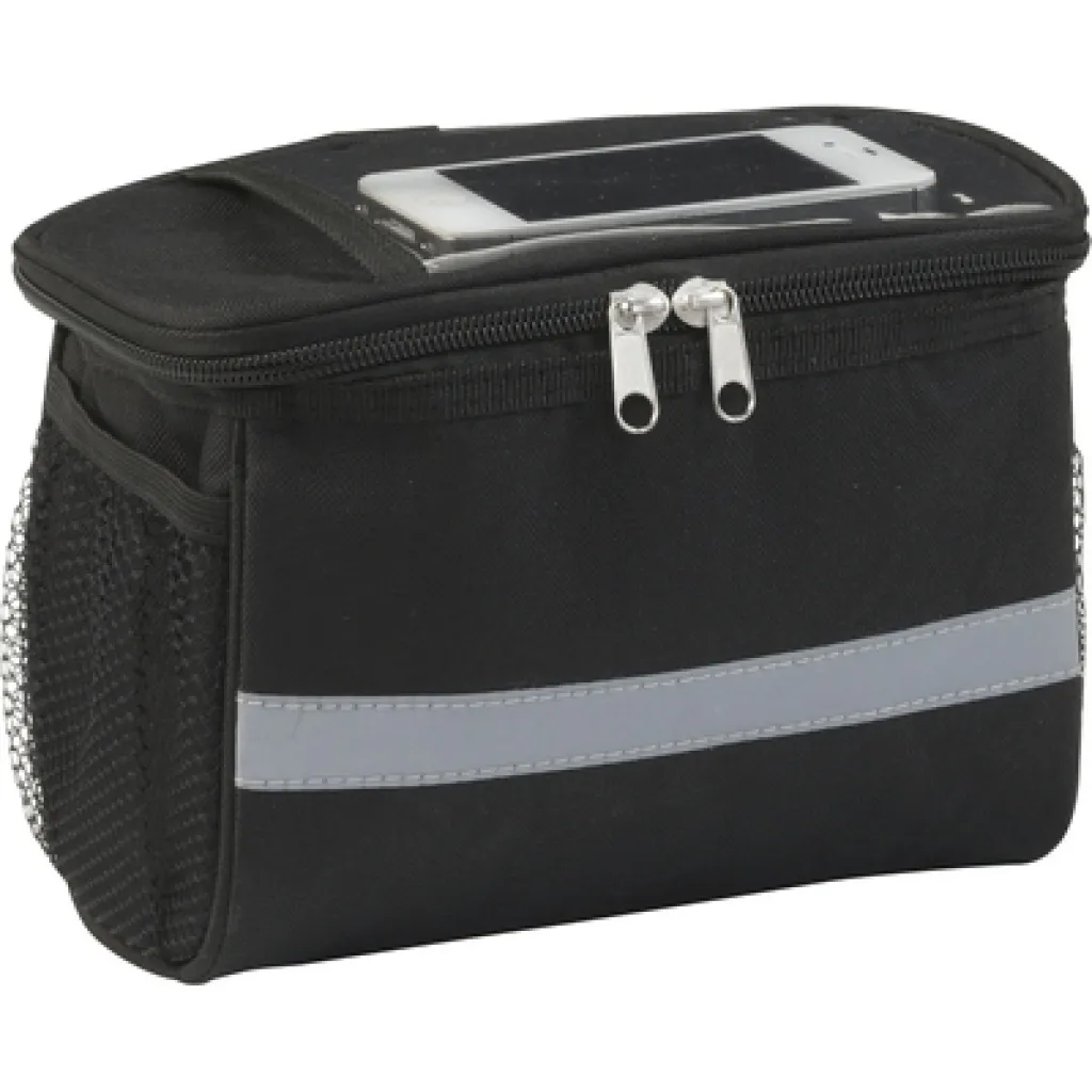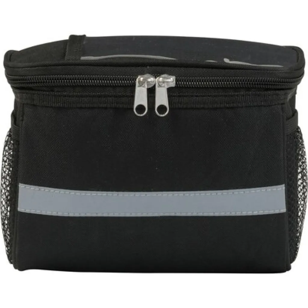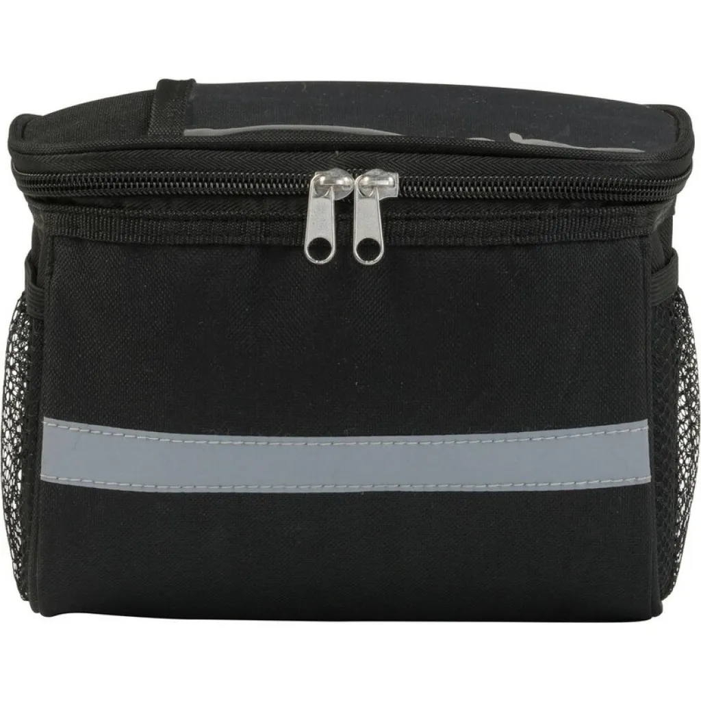 Torba za bicikl s patentnim zatvaračem koja je ujedno i rashladna torba. PVC džep na gornjem dijelu poklopca, reflektirajuće trake i mrežasti bočni džepovi.