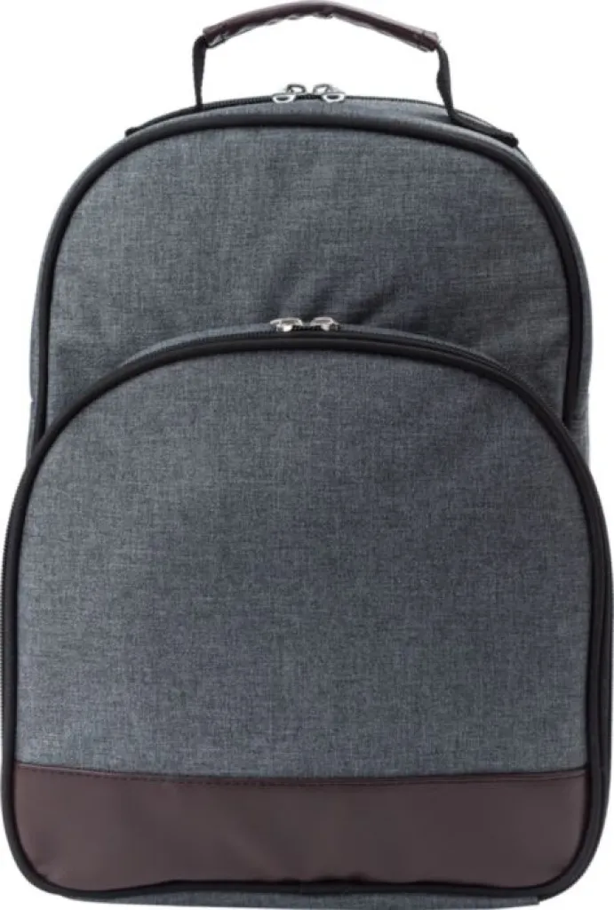Piknik rashladni ruksak od poliplatna (600D) s oblogom od aluminijske folije. Ima glavni pretinac i prednji džep s priborom za jelo, čašama i tanjurima za dvije osobe. Podesive naramenice.