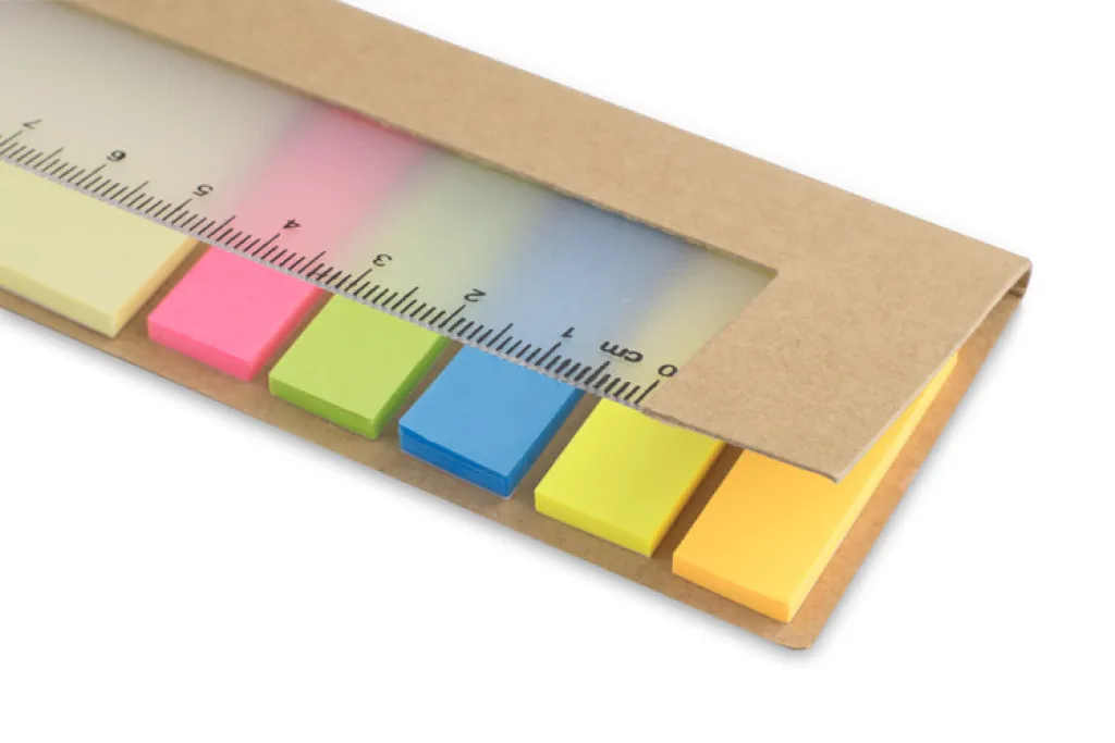 Prikladan set šarenih ljepljivih stickera i ravnalo. Neizostavna pomoć na bilo kojem radnom stolu.
