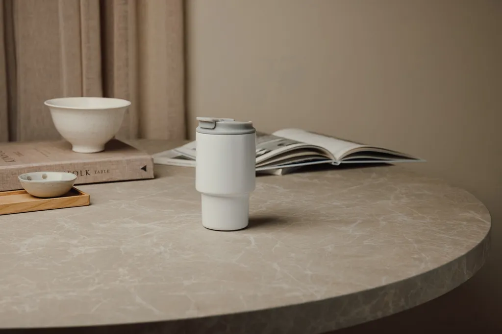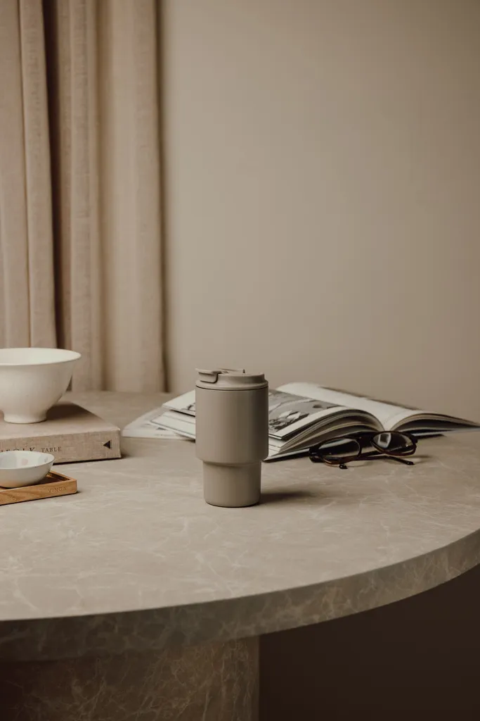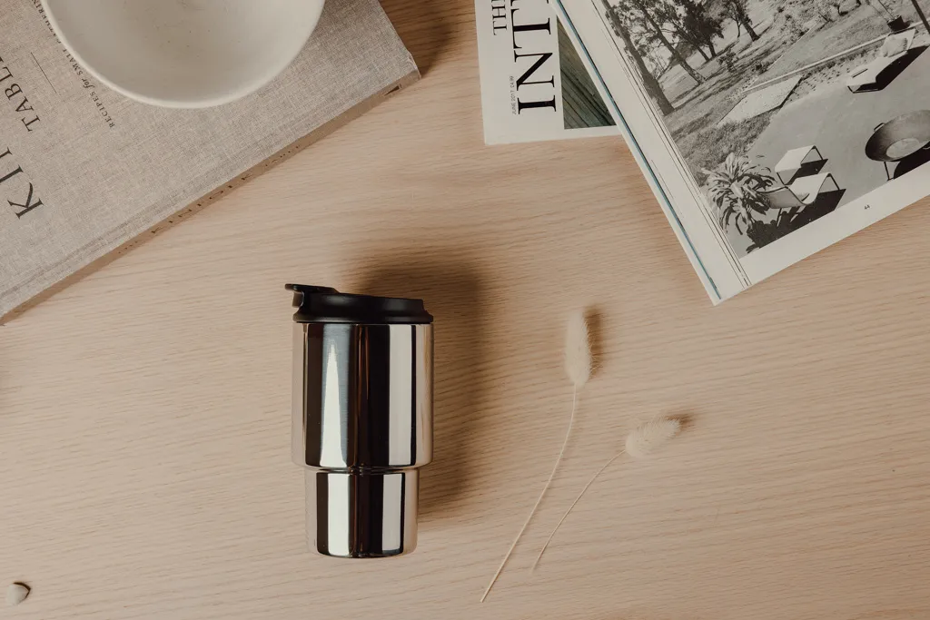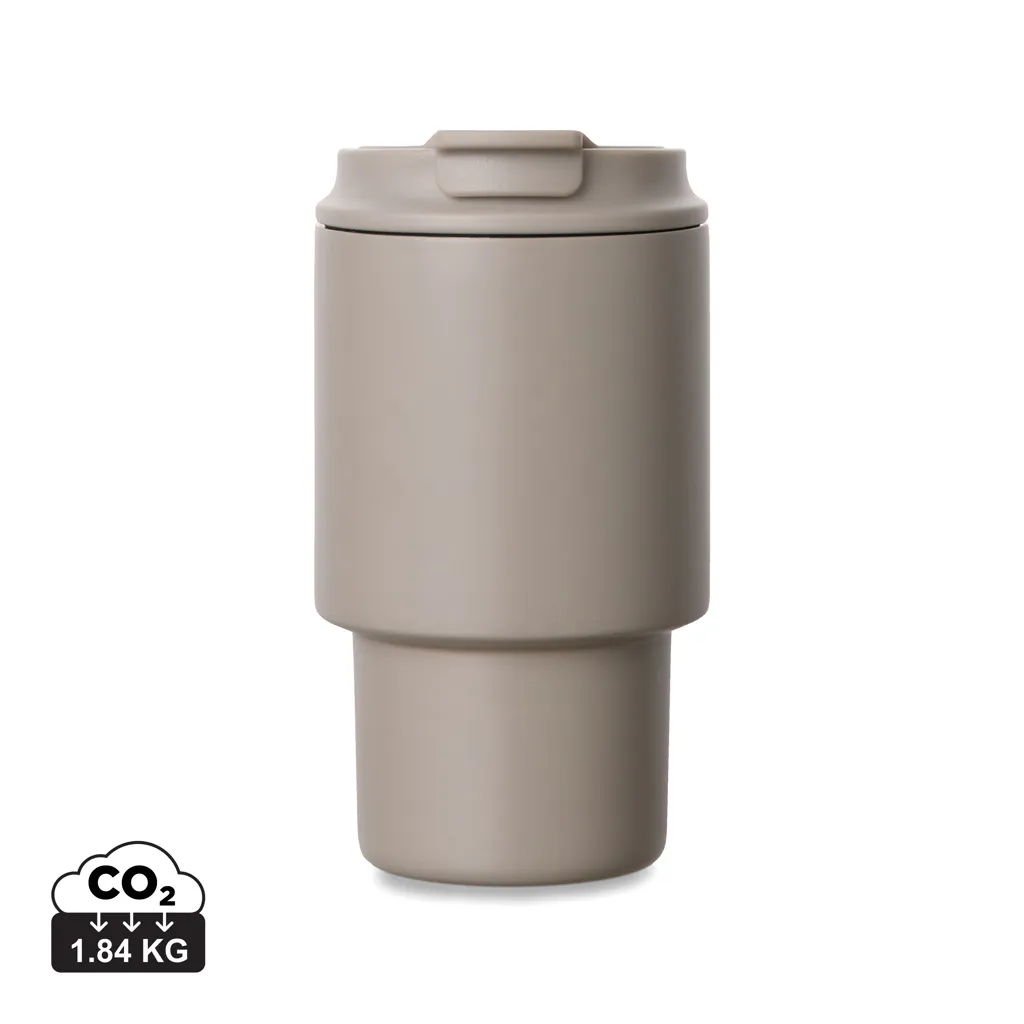 Ova šalica za van savršen je izbor za one koji žele i stil i funkcionalnost u pokretu. Pijuckajte kroz praktični poklopac na preklop ili jednostavno skinite poklopac i koristite je kao običnu šalicu. Široki otvor olakšava čišćenje nakon toga. Šalica održava vaše piće hladnim do 12 sati ili toplim do 4 sata. Nije prikladno za perilicu posuđa ili mikrovalnu pećnicu, samo ručno pranje. Certificirana od strane RCS-a (Recycled Claim Standard), RCS certifikat jamči da je cijeli lanac opskrbe recikliranim materijalima certificiran. Ukupni sadržaj recikliranog materijala temelji se na ukupnoj težini proizvoda. Ovaj proizvod sadrži 30% RCS certificiranog recikliranog nehrđajućeg čelika.