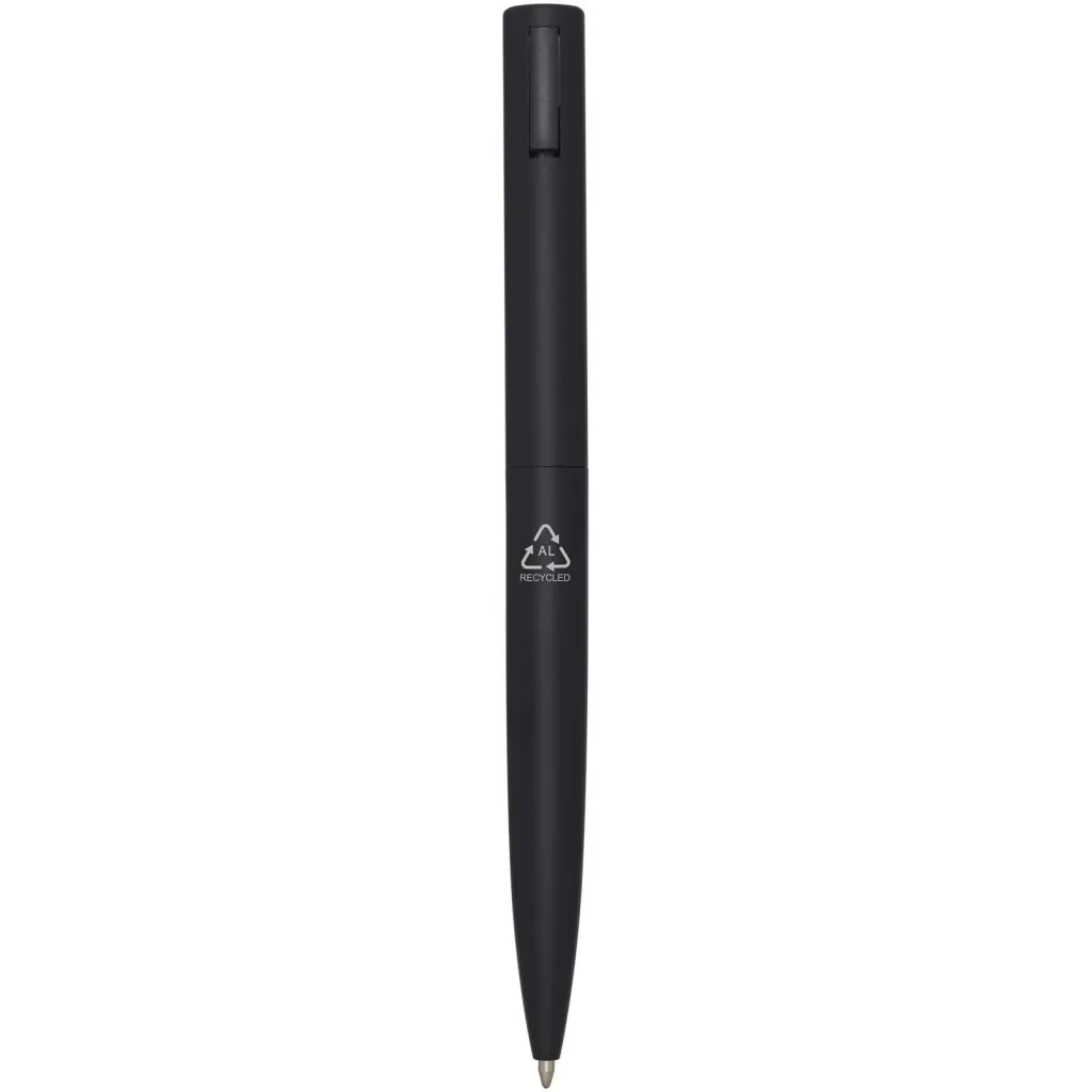 Kemijska olovka s gornjim dijelom tijela od reciklirane plastike, a donjim dijelom od recikliranog aluminija. Klipsa je izrađena od željeza. Boja tinte: plava. Duljina pisanja: 1000 metara. Veličina vrha: 1,0 mm.