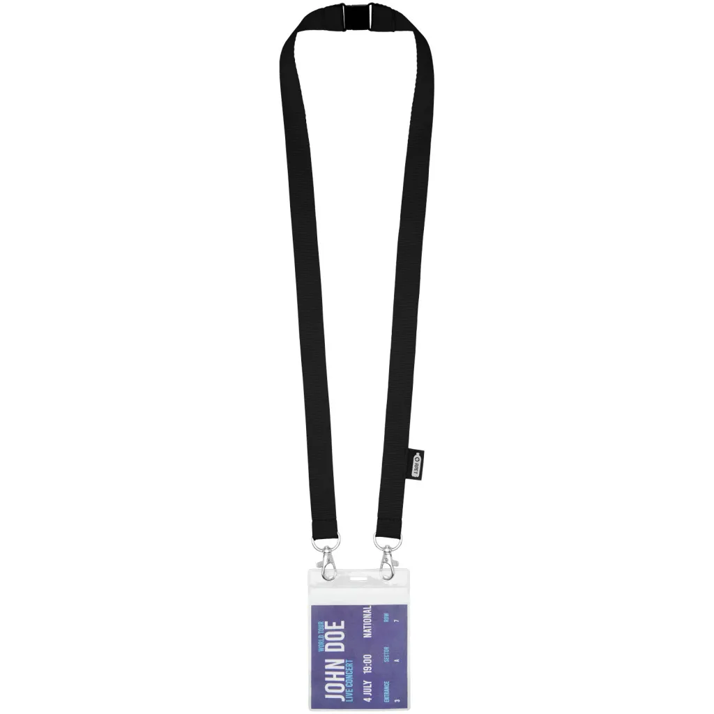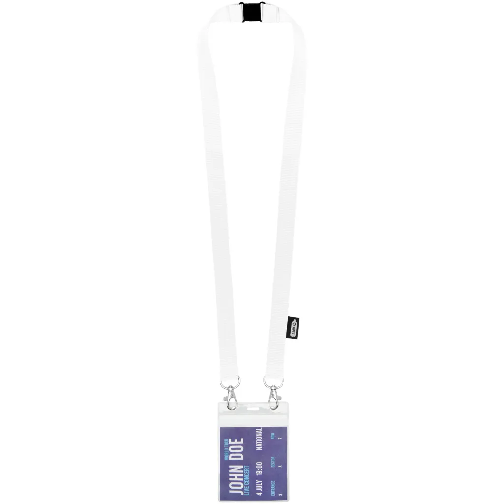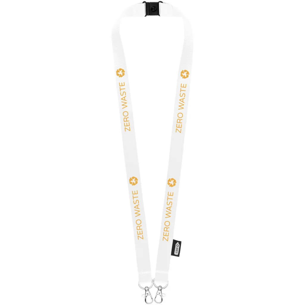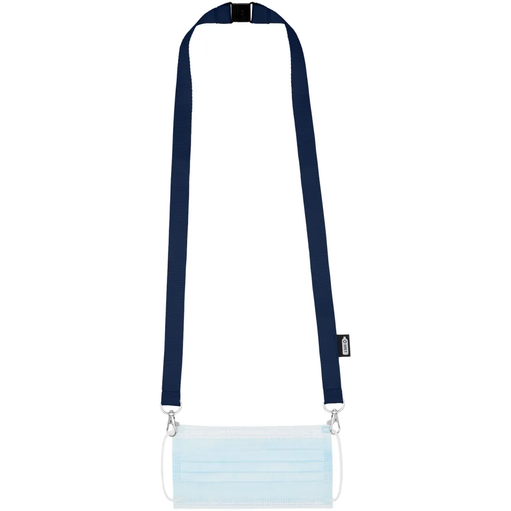 Reciklirana PET vezica s zatvaračem za masku za lice i držač akreditacije. Dolazi s dvije visokokvalitetna karabinera. Posebno prikladno za široke držače akreditacija. Nudi izvrsnu vrijednost za novac i veliku vidljivost logotipa kada tražite eko izbor.