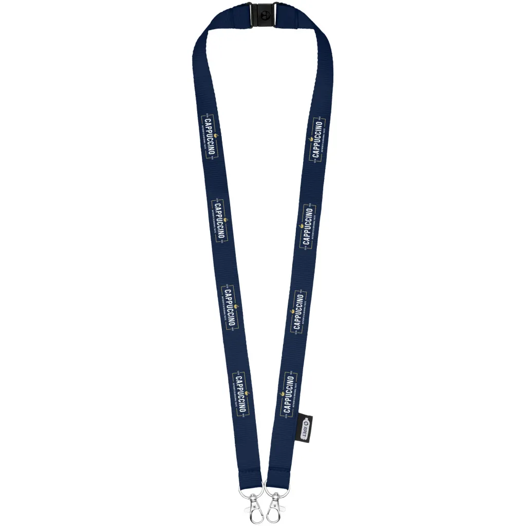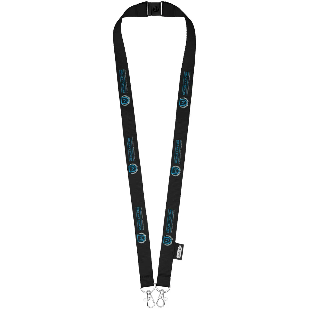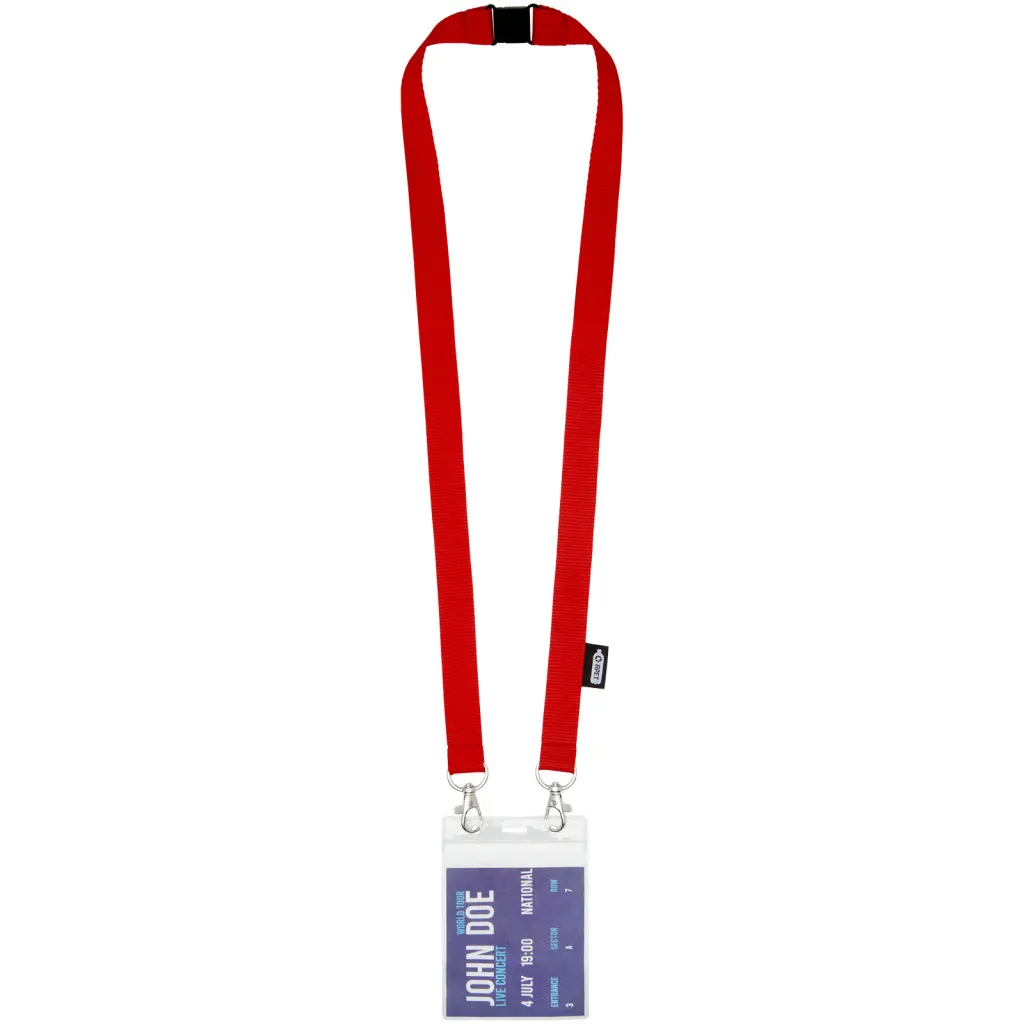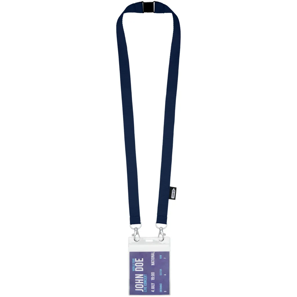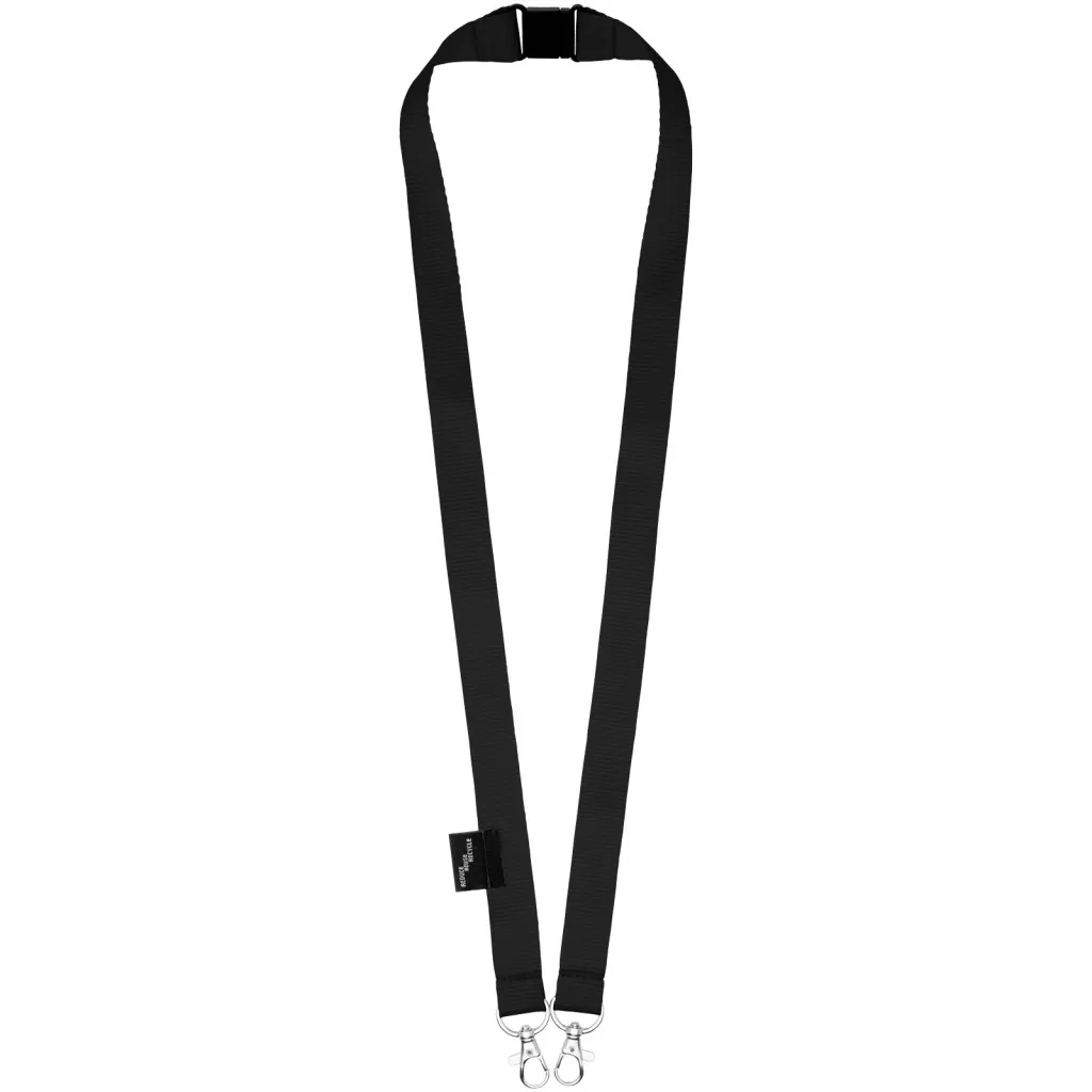 Reciklirana PET vezica s zatvaračem za masku za lice i držač akreditacije. Dolazi s dvije visokokvalitetna karabinera. Posebno prikladno za široke držače akreditacija. Nudi izvrsnu vrijednost za novac i veliku vidljivost logotipa kada tražite eko izbor.