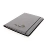 Portfelj od reciklirane kože dodaje malo dodatne sofisticiranosti vašem radu. Držite važne dokumente, kartice i bilješke zajedno u ovom prekrasnom portfelju s crnom elastičnom vezicom. Unutar portfelja A4 možete pronaći obloženi notes od recikliranog papira od 64 g/m2 koja sadrži 20 stranica. Unutar su 1 veliki džep, 3 džepa za telefon i 4 utora za posjetnice.