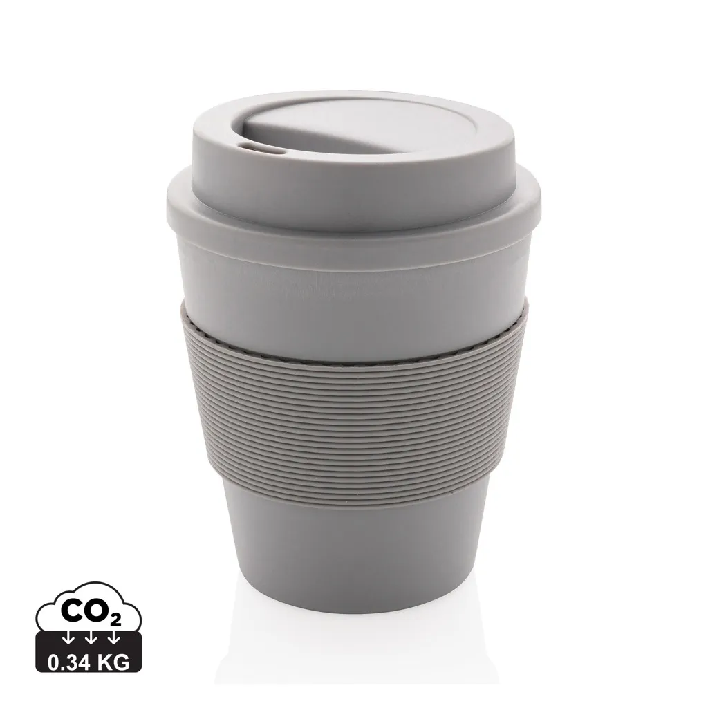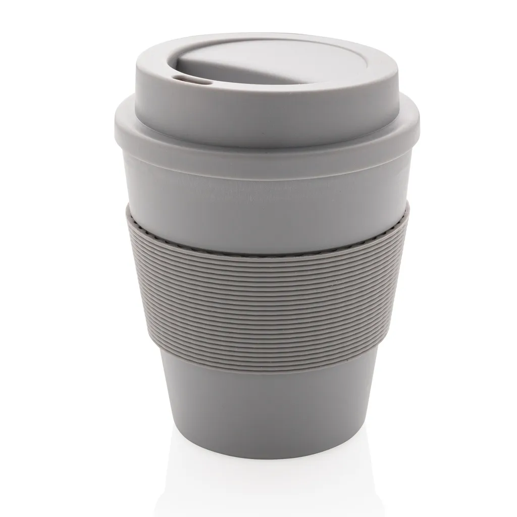 Zaustavite jednokratnu upotrebu! Donesite svoju šalicu i pridružite se revoluciji ponovne upotrebe kako biste mogli pridonijeti slobodnom svijetu bez jednokratne upotrebe. Ove lagane i izdržljive šalice savršeno su pogodne za ispijanje vaše kave u pokretu. Ove šalice su za višekratnu upotrebu i napravljene su 100% od PP materijala koji se može reciklirati. Sigurno za hranu do temperature od 100 Celzijevih stupnjeva. Sa silikonskim poklopcem i hvatištem. Pogodno za pranje u perilici za suđe i korištenje u mikrovalnoj pećnici. Odgovara za postavljanje ispod većine aparata za kavu. Zapremnina: 350 ml