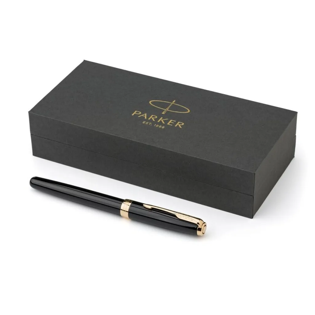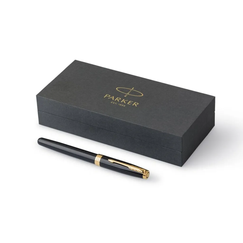 Roller kemijska olovka Parker Sonnet s crnom tintom, pakirana u poklon kutiji. Proizvod od metala.