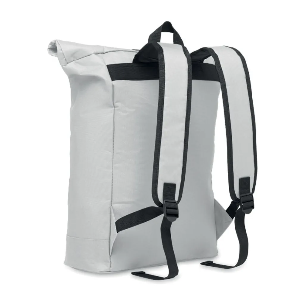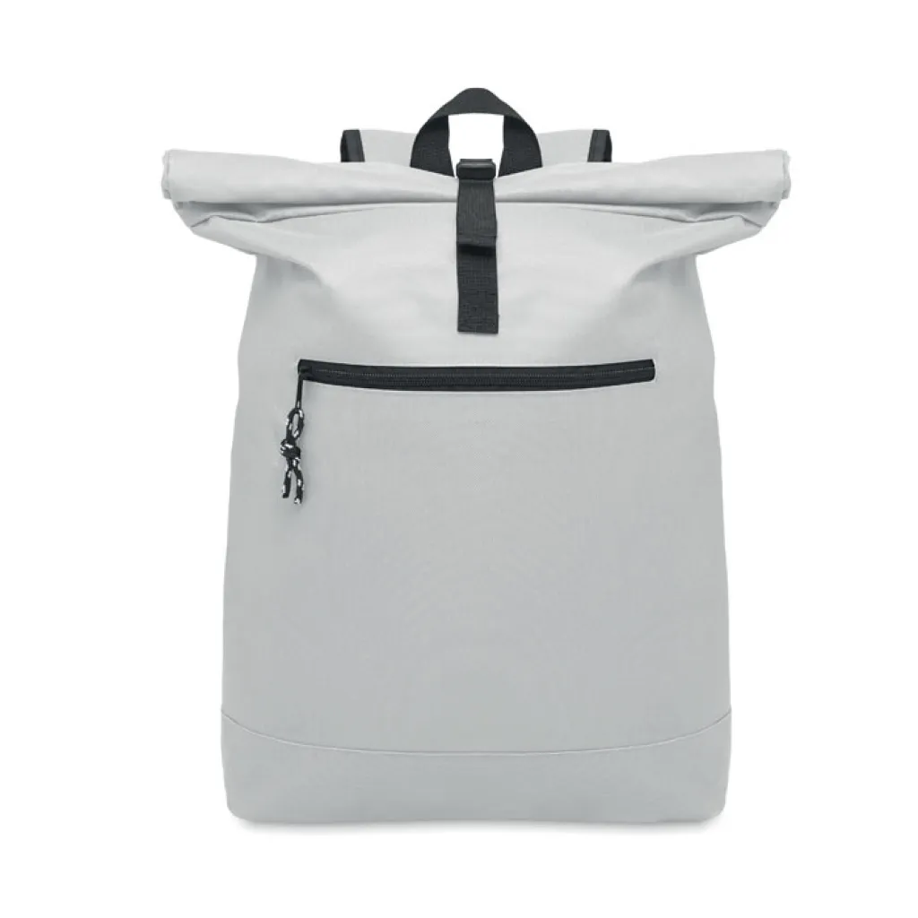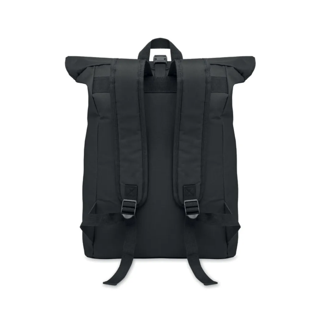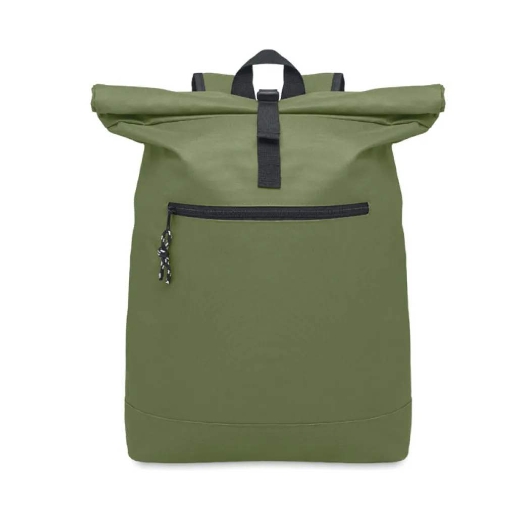 Rolltop ruksak za 15" prijenosno računalo, izrađen od 600D poliestera s podstavljenim leđima i ojačanom bazom. Prednji džep s patentnim zatvaračem. Podstava od 210D poliestera.