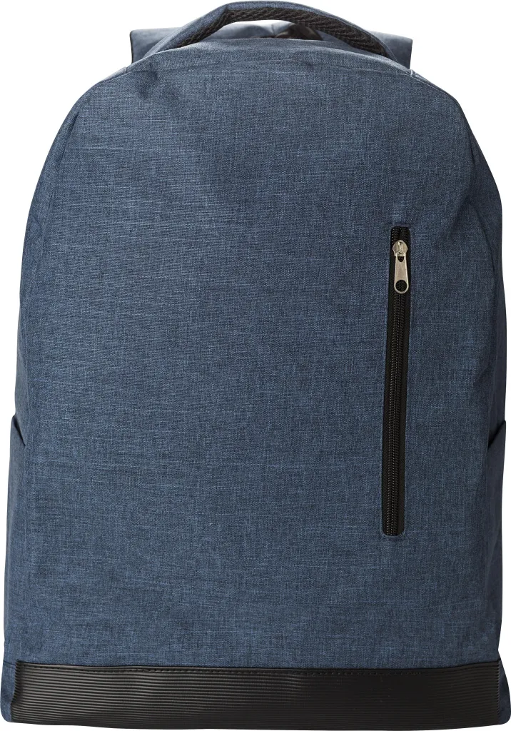Ruksak (15 inča) s funkcijom zaštite od krađe, materijal: reciklirani poliester - rPET (600D). Mali džepovi na stražnjoj i prednjoj strani, odjeljci za boce sa strane, trakica za kofer na kotačiće, džep za laptop s čičak zatvaračem, te podesive naramenice. Detalji na dnu ruksaka izrađeni su od recikliranih automobilskih guma.