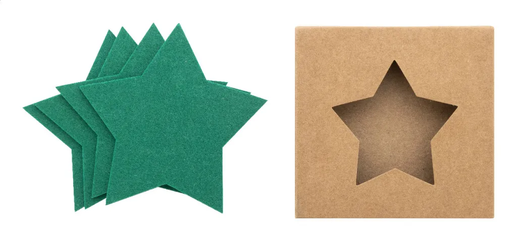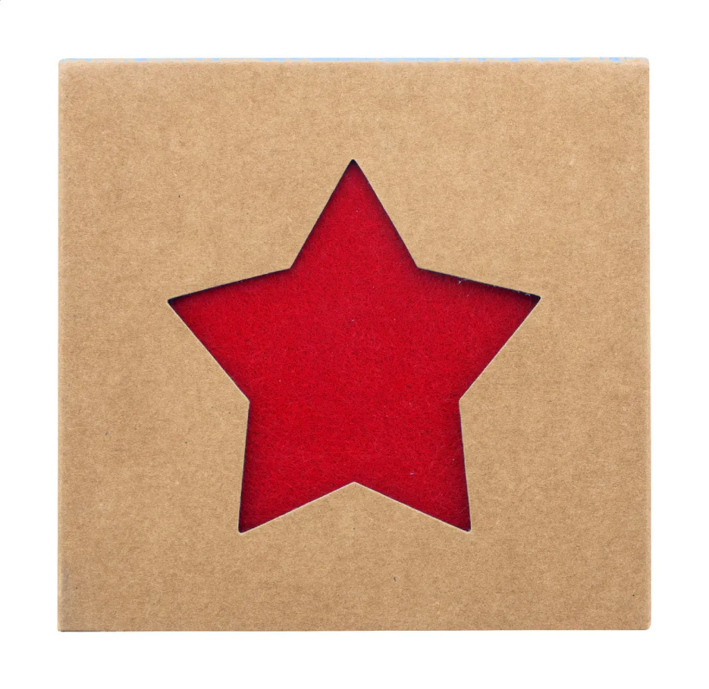 Set od 4 božićna podmetača u obliku zvijezde od RPET filta. U kutiji od kraft papira.