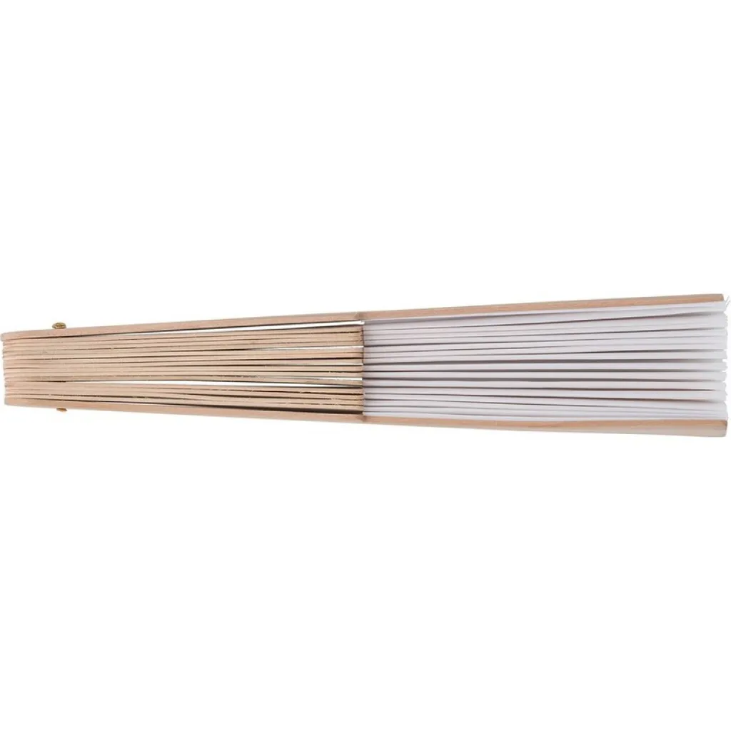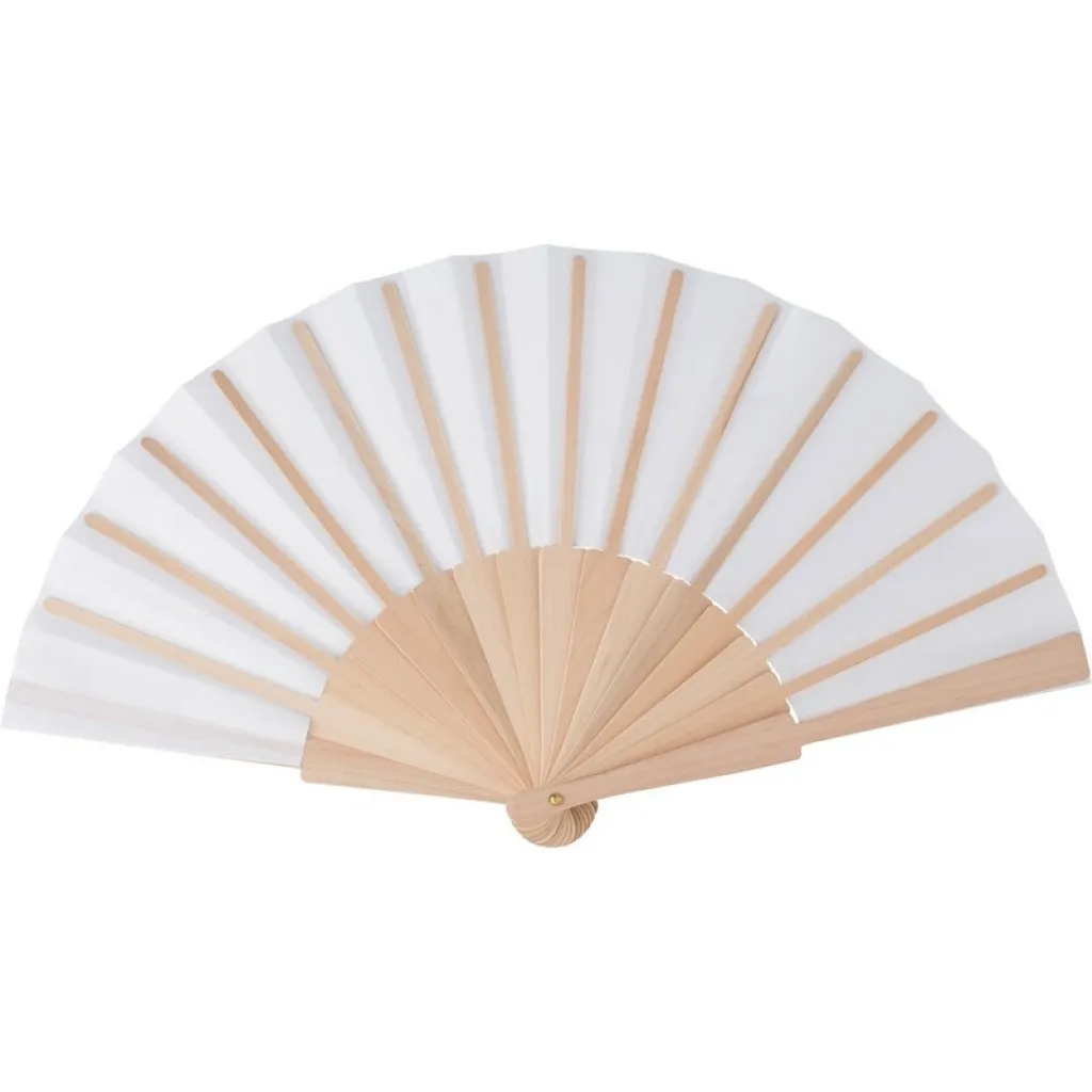 Ručna lepeza s RPET tkaninom i drvenom ručkom.